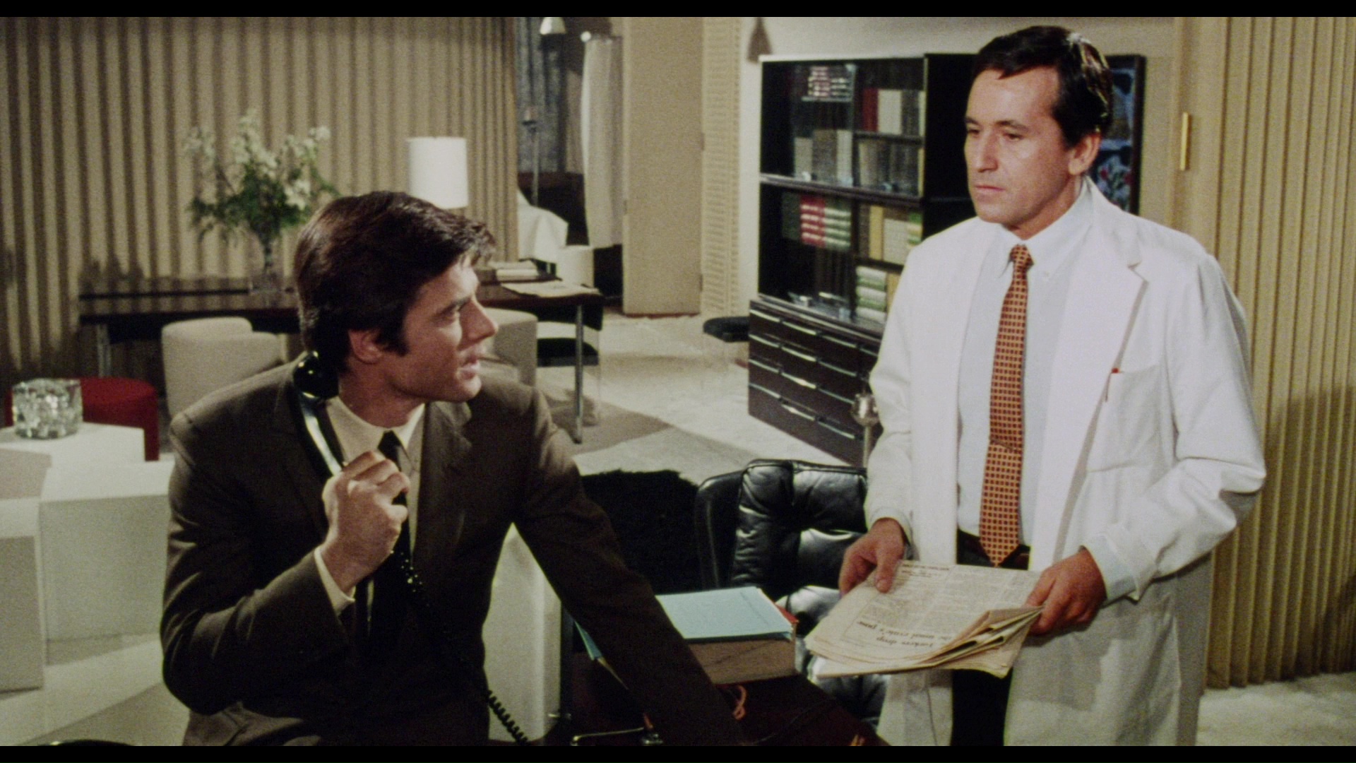 different with a softer, less contrasty veneer (see frame grab comparison #5 below), and the vibrant reds and golds of the original color scheme have been thankfully left intact. In a nice touch, not only are the English and Italian audio options present (DTS-HD MA mono) with optional English (translated) subtitles, but the language choice from the menu plays the film with its respective title sequences (as One on Top of the Other or Una sull'altra). The audio on the English track is much clearer and punchier, but the Italian is functional for what it is. A video interview with Sorel, "On Death Row" (29m47s), covers his glory days in European co-productions (with Italy as the ultimate "meal ticket"), his career-shifting role for Visconti, the limited confines of "erotic cinema" in Italian films at the time, Fulci's penchant for giving everyone nicknames, the pleasures of driving a Corvette all over San Francisco, and more. Probably recorded right before her death, "The Last Diva" (9m58s) features Martinelli discussing her distaste for horror films, her attraction to the basic crime story of this film, and her memorable glass table scene with Mell. Always a poetic analyzer of Fulci cinema, Stephen Thrower turns up for a new featurette (38m22s) covering Fulci's genre-hopping tendencies leading up to this film, the nascent state of the giallo at the time, this film's departure from the subgenre's strict definitions, the influence of Vertigo, the role of producer Edmondo Amati, the peculiar decision to set the original script in Louisiana, the contributions of its stars with a nice focus on Mell, and the possible real-life influence of the case of death row inmate Caryl Chessman. A fuzzy English-language trailer is also included along with the obligatory Mondo Macabro promo reel. MONDO MACABRO (Blu-ray)