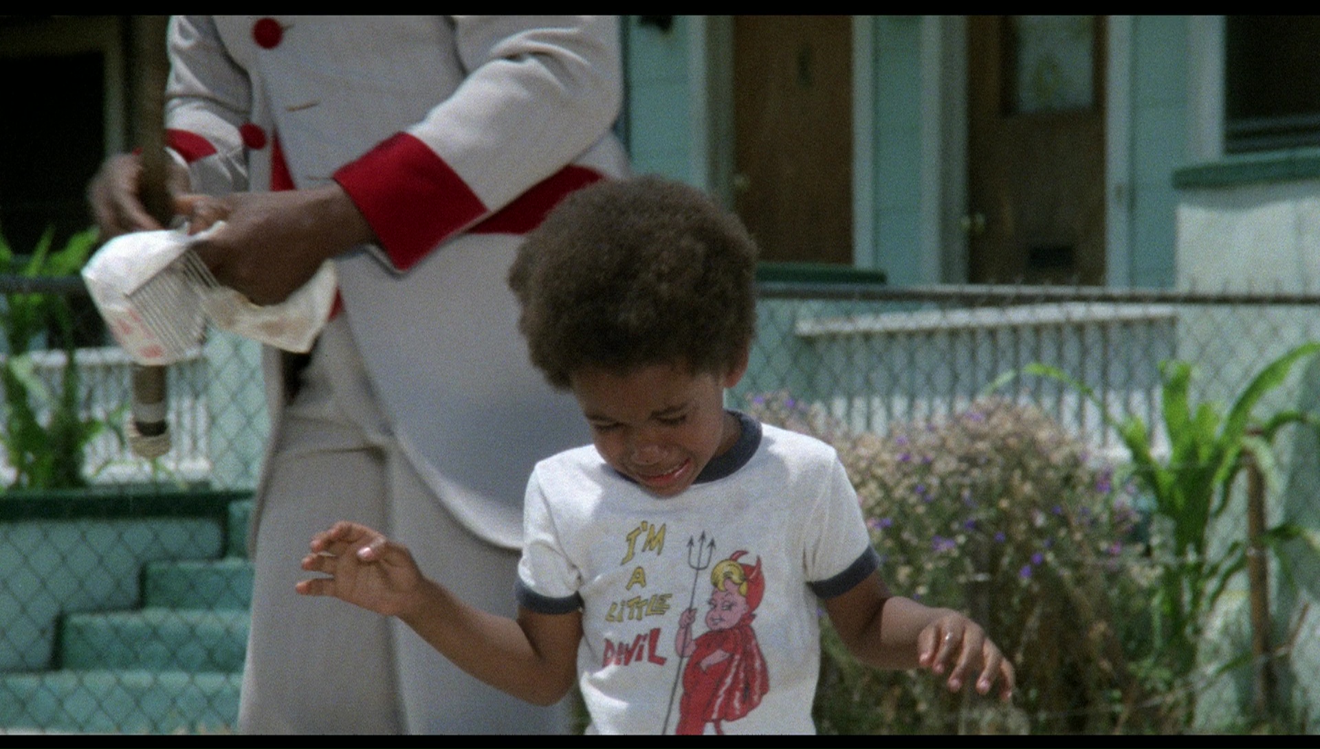 some anomalies baked into the negative like dirt in the opening titles and a couple of shots where one camera appeared to be shooting on damaged film. Some darker scenes obviously shot in insufficient lighting look rough and grainy, not surprisingly (especially the rooftop climax), but that's the nature of the source. The DTS-HD MA mono audio sounds immaculate, and the English SDH subtitles must have presented an unusual challenge to the poor transcribers. (You'll see the word "gibberish" a lot.) The region-free combo Blu-ray/DVD pack features identical extras on both discs, led by the third installment in the "I, Dolemite" documentary series about Moore's career. Running 18 minutes, it features interviews with the late Moore, biographer Mark Jason Murray, actor/set designer Jimmy Lynch, co-editor Jack Tucker, cinematographer Nicholas Von Sternberg, and writer-director Cliff Roquemore's two sons, and there's also a new commentary with Murray, Lynch, and a few inserted comments from Roquemore. Between the two you get a fun look at how the film came about (inspired by Moore's stage act derived from 1930s American blues singer Peetie Wheatstraw), the casting of baby Petey, a ghost lurking in one of the shooting locations, and other craziness from the set. An 8-minute “Shooting Locations Revisited” featurette has a barely audible Moore (in an awesome outfit) showing off where some of the film was shot, from an old apartment building to the P.O. Box that served as the production's official address. A gallery of press material, posters, and other material is also included along with a 34-minute presentation of the soundtrack and trailers for Dolemite, The Human Tornado, and The Disco Godfather.