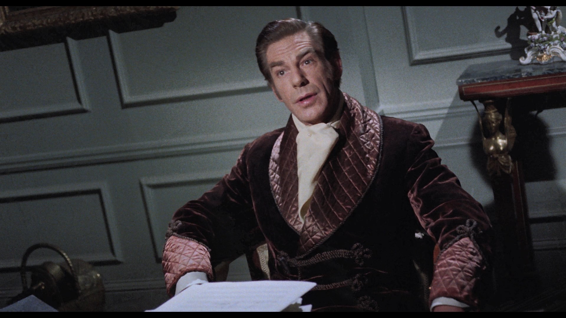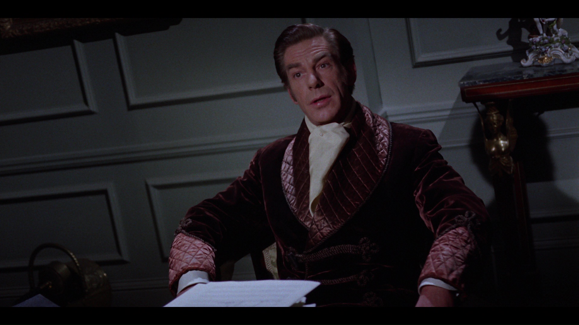 sported a much improved 2.00:1 transfer that added quite a bit more to the sides compared to the Final Cut and featured vastly superior color rendition and detail. Last and even better was the 2017 German edition from Anolis, whose great track record with Hammer titles offers a 1.78:1 presentation with more visual information on all four sides than its predecessors. The color scheme and detail level look comparable to the Universal release, and the English mono track is presented in DTS-HD MA along with the German dub and a German-only audio commentary by Dr. Rolf Giesen and Uwe Sommerlad. The Final Cut documentary is ported over here, and the theatrical trailer is included in far more pristine quality than anywhere else. Also included is a sample of the German main titles (which are very different), some German-shot signs of opera posters throughout the film, and the closing credits; also on hand are an image gallery, a U.S. radio spot, and samples of international pressbooks in English, German and French.