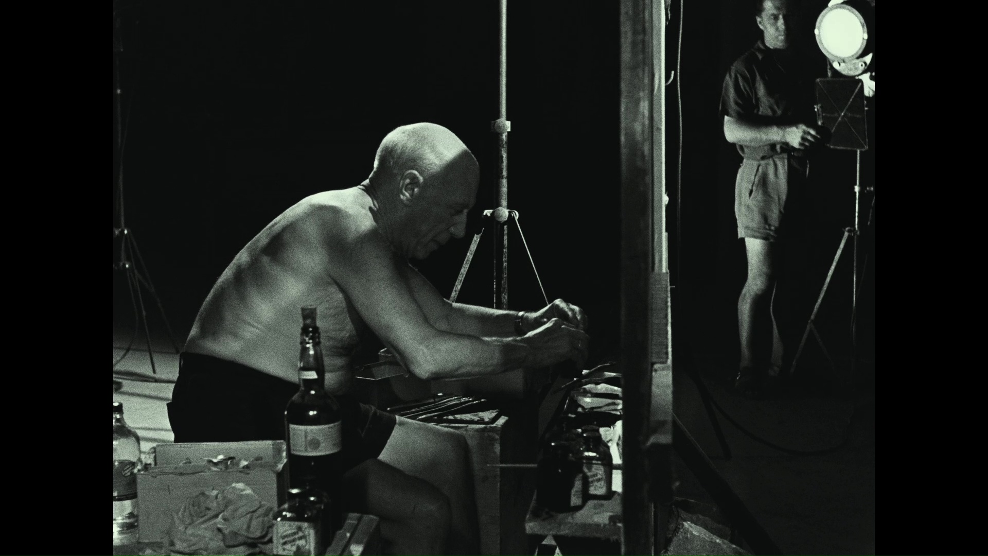 comparison since (a) it spends its opening section providing background on the painter, (b) is shot only in black-and-white, and (c) has a far more whimsical tone since you can see Picasso standing in front of the camera painting on the glass. The quality of the short is also mostly excellent apart from some age-related fluctuations in
