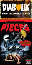 Nearly four years later in 2011, Arrow Video issued its own DVD of Pieces in the UK with a transfer apparently from the same source but featuring PAL speedup, which makes it sound a tad odd if you know the film well. Extras here are completely different including a video intro by Jack Taylor, a commentary with former Fangoria editor Tony Timpone and moderator Calum Waddell, a liner notes essay by Stephen Thrower, and an appreciative featurette with thoughts on the film by Scott Spiegel, Howard Berger, Michael Gingold, and Santos Ellin, Jr. So yeah, you need that one, too.