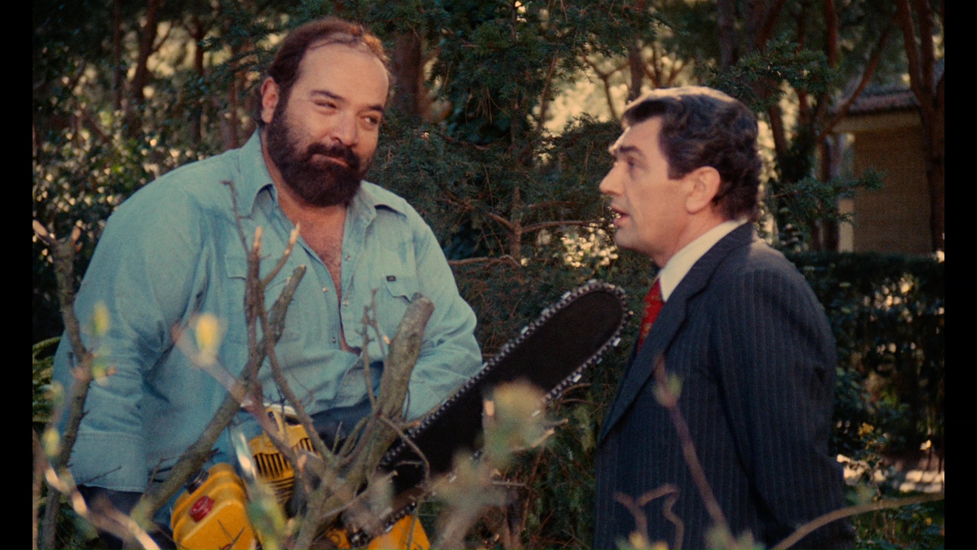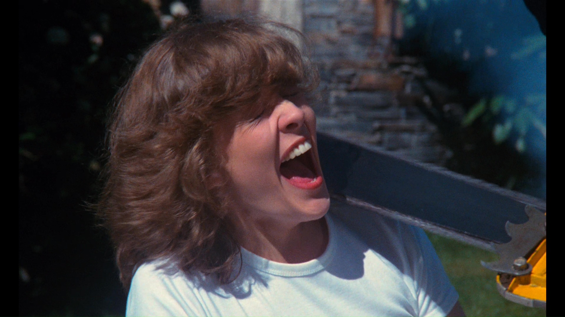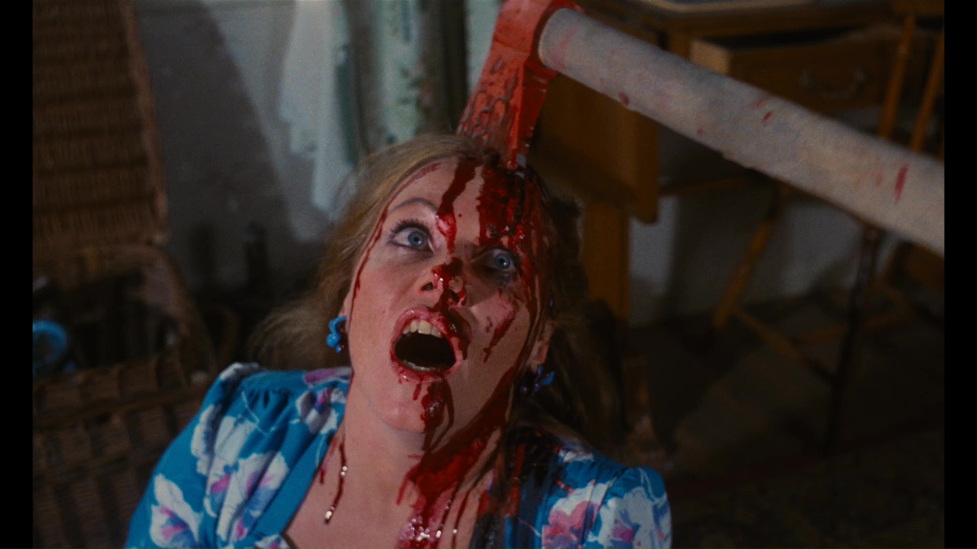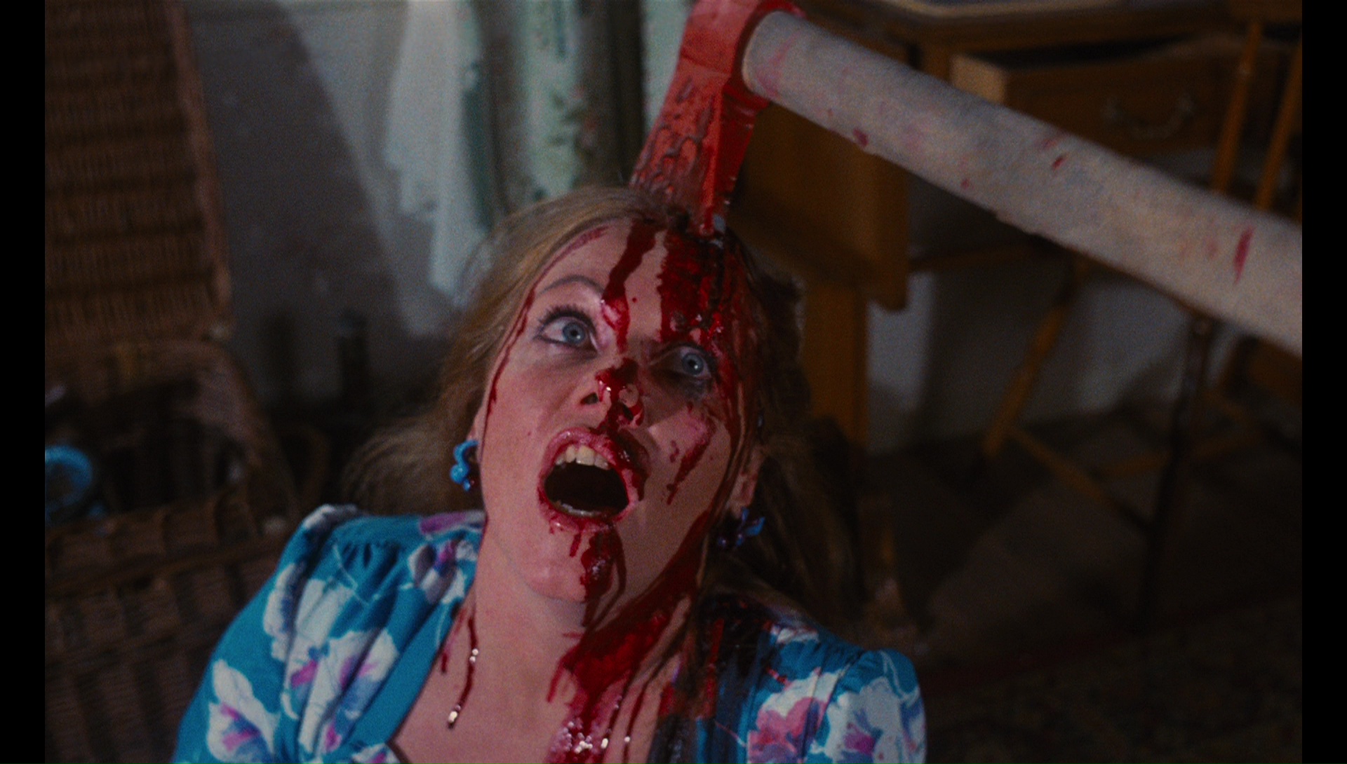 with a three-disc set from Grindhouse that rounds up the previous extras into a shiny new package with plentiful new material as well. The immaculate new transfer looks gorgeous and shockingly robust, far better than you'd ever expect the film to look, and both the English and Spanish audio tracks are intact with different music scores. Note: to play the original Spanish edit with correct subtitles, you have go through the "Play" option on the menu chainsaw instead of "Setup;" the latter will just give you the U.S. cut with Spanish audio and dubtitles. Both versions sound terrific, and Lynda Day George's showstopping howl of "Bastard! Baassstard! Baaassstaaarrrrd!" has never resonated so strongly in any home theater. New here is a third audio option for the film, a newly-composed score by "Umberto," which you should watch with the film's subtitles switched on for the full effect. It's quite a cool piece of continuous music recalling the vibe of classic Euro horror scores with kind of a synthpop twist. The alternate Vine Theater experience track is here as well, while Jack Taylor contributes a bemused new audio commentary in which he chats with moderator Waddell about virtually everyone from the film and his attitude about making it (saying it wasn't a work of "great intellect" pretty much sums it up!). He talks quite a bit about his career in general and other work with Simón, too, which always makes for good listening. A look at a 2002 Hollywood screening is also tucked away in one of the menu screens along with a 2008 Eli Roth intro from a New Beverly screening with Torso (which is, well, the usual Roth routine) and the video of Simón leafing through lobby cards, while the more easily accessed extras include the U.S. trailer and four separate image galleries. The "Production Stills" one is essentially an HD expansion of the final and unused nudie shots (with a hilarious punchline involving Sera at the end), while "Publicity Materials" collects together tons of international posters, ad mats, and other ephemera. "Video Releases" highlights the many editions on home video in various formats over the years -- some of it amusingly swiping poster art from entirely different movies like Slaughterhouse, The Night Evelyn Came Out of the Grave, and The Texas Chainsaw Massacre! "Bits and Pieces" highlights fan art and poster designs as well as flyers for horror fest screenings over the years, and "Juan Piquer's Still Show" is the lobby card video from the DVD release.