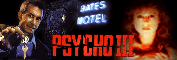 "There is no God!" howls the anguished voice of Maureen Coyle, a young nun, in the moody pre-credits sequence. Poised at the top of a mission bell tower, she plans to commit suicide by leaping to her death. Meanwhile, a group of nuns gather behind her and plead for her to reconsider. One of the sisters accosts Maureen and winds up falling through the wooden railing, several stories down to her death (a nice homage to Vertigo). Banished into the desert with only a suitcase in hand, Maureen catches a ride with Duane (Jeff Fahey, in a good sleazy role for once), a lowlife driving to California with dreams of becoming a musician. When Duane gets a little too friendly, Maureen bolts off into the night. To reveal more of the plot would be unthinkable, but Psycho III offers a number of startling twists and turns which remain consistent with the Norman Bates persona established in the prior films while introducing a number of intriguing, damaged new characters. Norman's pitiful attempts at establishing a romance with Maureen are extremely well handled, right down to the unexpected use of that Cupid statue in Mother's house. While the studio insisted on adding some gory violence to a couple of sideline murder sequences as well as a more open ending, Perkins handled the demands with bravura, even including an unexpected homage to Dario Argento's Tenebrae in the phone booth scene. Sensitively acted and laced with a fine dose of black humor, the film really deserves a much better reputation than it currently enjoys, though a small cult following has justifiably been building over the years. While the relentlessly dark, uncompromising aspects of this film certainly won't appeal to everyone, the utter critical dismissal of this film is bewildering; for example, Leonard Maltin claims it plays Norman "strictly for laughs," as drastic a misreading of the film as one could imagine. Technical aspects of the film are remarkable, especially considering Perkins' lack of previous experience as a director; the dark, beautiful chiaroscuro photography puctuated with colorful flashes of saturated neon lighting is a complete departure from the hard edged look of the other Psycho films. Best of all, Carter Burwell's magnificent, terrifying, and haunting score (written right after his work on Blood Simple) adds immensely to the skewed atmosphere of putrefecation and tortured love; MCA sorely needs to give it an overdue release on CD. On the downside, viewers must have seen the other two films in order to make sense of several major story points, and even so, Maxwell's frantic climactic explanation (sort of like Simon Oakland's psychiatric speech in the first film, only a lot more hysterical) remains a little hard to follow.