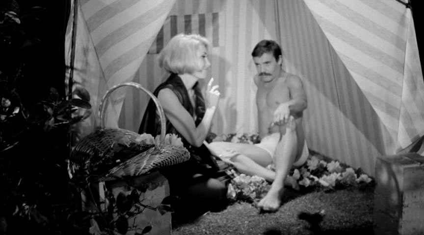 which the party sequence turns into a full-on topless strip routine and heavy petting orgy. The alternate four-minute sequence found in the American release is included as an extra, instead containing some suggestive belly dancing and slightly less orgiastic partying. The image quality from a 2K scan of the original negative is beautiful, not surprisingly, with nary a flaw to be seen. The soundtrack is in rougher shape with some rumbling and crackling, but it's such a massive improvement over anything we've had before that it scarcely matters.