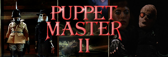 e series mythology without mucking it up, Puppet Master II is a textbook example of a Full Moon film at its most pure and enjoyable. The characters are all enjoyable and interesting enough without overstaying their welcome, each puppet gets to strut its stuff at least once or twice (though as usual Blade gets some of the best moments, including a killer POV shot attacking someone's face), the obligatory flashback (to Cairo this time) advances the story and sets up the finale, and on top of that, it also boasts the most beloved nude scene in the series (courtesy of Spradling, who also, ahem, enlivened her scenes in Full Moon's Meridian and even David Lynch's Wild at Heart). Once again Richard Band breaks out the synthesizers for a quirky score containing the usual series theme along with a few new flourishes, and of course, there's even a set up for another sequel (which, also as usual, is completely ignored by the subsequent film). The last 20 minutes or so are especially worthwhile, a frenetic combination of puppet attacks and macabre twists that wouldn't be out of place in Tourist Trap. Good fun all around.