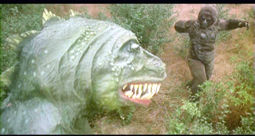 Retromedia's disc of this rarely seen oddity is one of the strongest in their roster to date. The widescreen transfer looks colorful and fairly crisp, taken from an undamaged source. Framing and detail are both satisfactory. Mono audio is also consistently sharp, showcasing the unbelievable funk score by The Peppers (which has become something of a soundtrack collectible). Retromedia honcho Fred Olen Ray appears on an audio commentary track with the heavily accented and ingratiating Agrama, and the two have a fine time reminiscing about crafting this spoof on a threadbare budget and both display obvious love and affection for monster films. Also included is the original trailer, which probably never had the chance to pass through too many projectors.