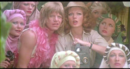 After her mincing leading man walks off the set, taskmaster director Luce Habit (camp TV staple Rula Lenska, bearing a striking resemblance to Fiona Lewis) looks for a way to salvage her jungle adventure film. When they return to London, salvation arrives in the form of Ray Fay (sex comedy regular Robin Askwith), a pun-prone jokester who traipses with the crew through the wilds of Lazanga-Where-They-Do-the-Konga (and drink Konga Cola) in search of the perfect locale. However, plans change when they stumble upon a bikini-clad tribe of cheesecake goddesses led by the always amazing Valerie Leon (Blood from the Mummy's Tomb), who swipes Ray off a ship (after an irrelevant Jaws parody) and arranges to have him stuffed into a giant wedding cake and sacrificed to the local god, Queen Kong. Upon arrival, the shambling, big-breasted ape sends Ray into a