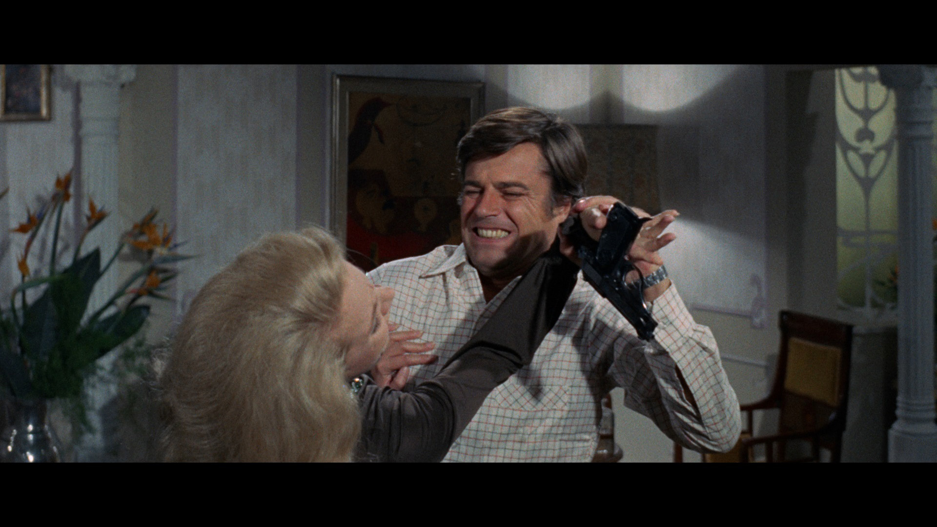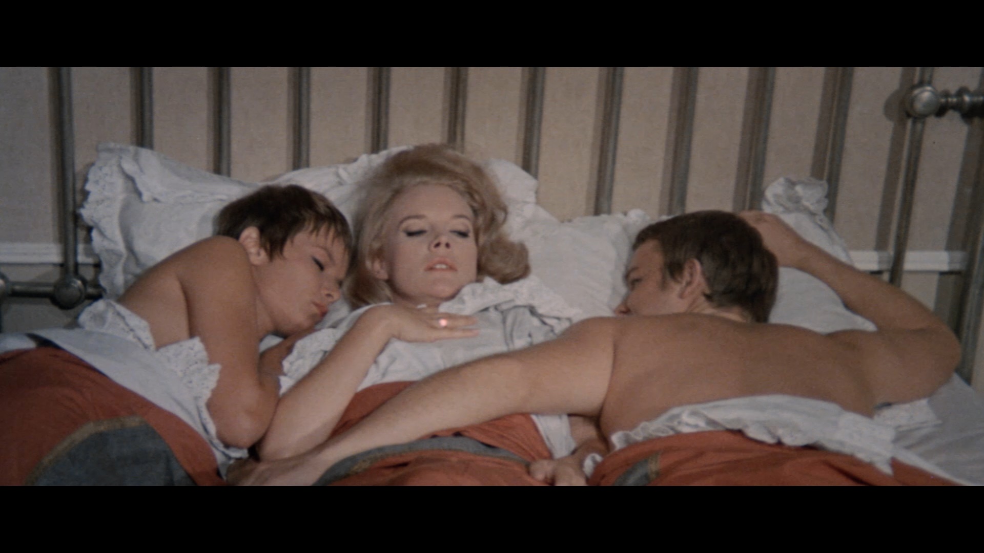 If the previous film was inspired by Gaslight and some of the early home invasion films like Lady in a Cage, Kitten with a Whip, and The Desperate Hours, this one seems to be taking a cue from Diabolique with its parade of infidelities, double crosses, and possibly faked deaths. Trintignant stars as Jean, a skeet-shooting philanderer who's currently sharing the bed of married Helene (Liné) during the afternoons when he isn't focusing on his wife, Danielle (Blanc), who seems to mostly sit around undressed in front of mirrors. The intrigue kicks in when skittish Nicole (Baker) becomes his new upstairs neighbor, igniting a new affair complicated by her recent release from a mental hospital and the presence of her ongoing stalker, Klaus (Frank). As Jean becomes infatuated with the new arrival and contemplates a major change