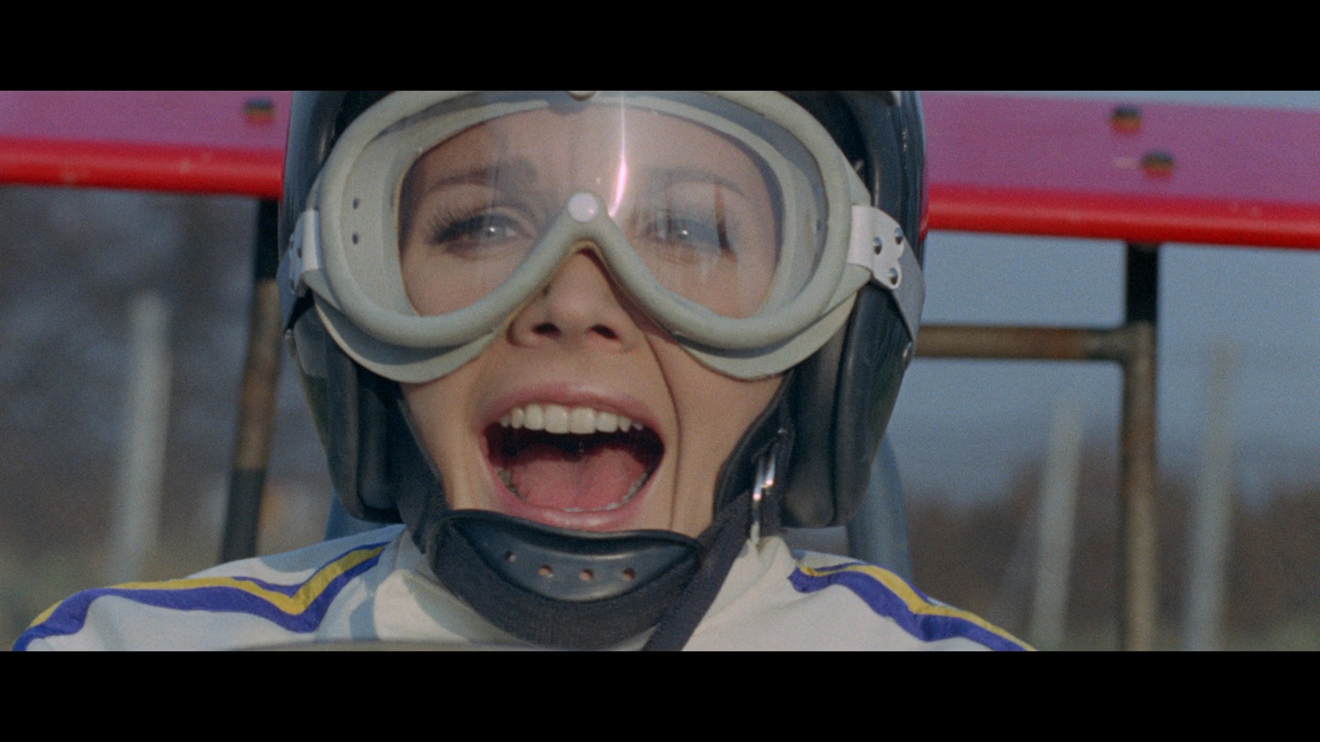 provided in English and Italian DTS-HD MA mono options with optional English-translated or English SDH subtitles; the English track is going to be preferable for most viewers since some (but not all) of the actors provide their own voices and were speaking English on the set, but the Italian version has its own points of interest including more poetic dialogue and a few variations in meaning with some of the line deliveries. The film can also be played with a new audio commentary by Kat Ellinger, who absolutely knocks it out of the park here; it's one of her very best giallo-centric tracks with an upbeat, razor-sharp focus on the film that encompasses connections to Lenzi's non-genre cinema, the parallels between Baker's own nervous breakdowns compared to her character's back story here, the importance of Gastaldi's narrative, and the merits of these often overlooked films in between the heydays of Bava and Argento. Engaged, perceptive, and entertaining, it's a great way to increase your appreciation of this film on numerous fronts. As for video extras, "Lenzi's Lenses" (9m5s) is a "backstage chat" with the director at the 1999 Nocturno Film Festival, chatting about shooting the film in Paris, the importance of Italian-French teamings in his career, his favorite actors and genres, and this title's particular significance in his memory including his issues with the later stretch of the location shooting. Then the brief "Equilateral Triangle" (5m59s) features Gastaldi recalling his somewhat turbulent relationship with the Tuscan director who had become "touchy and tense" at the height of his career. Also tucked away in the main menu (and barely hidden) is a reel of Italian newsreel and TV coverage (7m30s) on Baker focusing on her portrayal of Jean Harlow and Baby Doll. Finally you get the English and Italian trailers and the Italian main titles.