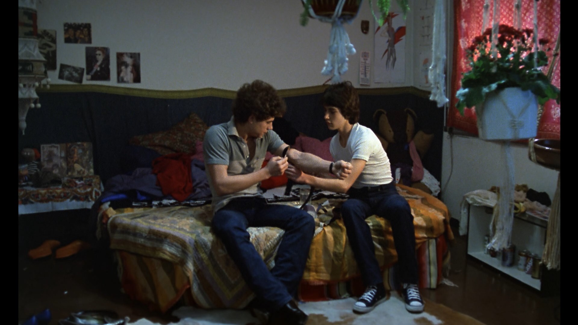 subs (along with the more genteel fifth and final film in the Iglesia quinqui cycle, La estanquera de Vallecas), but is well worth checking out if you can find it. That brings us to the second film in the Severin set and the biggest hit of them all by far, El Pico, which made a big splash in 1983 in Spain (and nowhere else, unfortunately). Paco (Manzano), who lives with his family including an extremely conservative father, Evaristo (Cervino), has fallen into drug addiction with his best friend, Urko (Garcia), who comes from a broken home and a leftist politician dad. Rather than preparing to go to military school, Paco spends his time with Urko as they have sex with Betty (Espinet), who points them into becoming drug dealers. Paco also frequently hangs out with a gay artist, Mikel (San Francisco), who urges him to stay clean -- something that the young man finds increasingly difficult when tensions at home involving his terminally ill mother explode and his father has to take dramatic steps for an intervention.