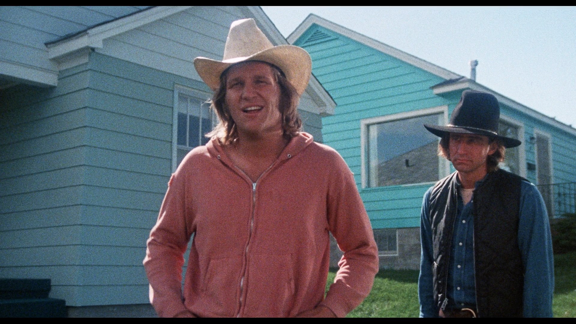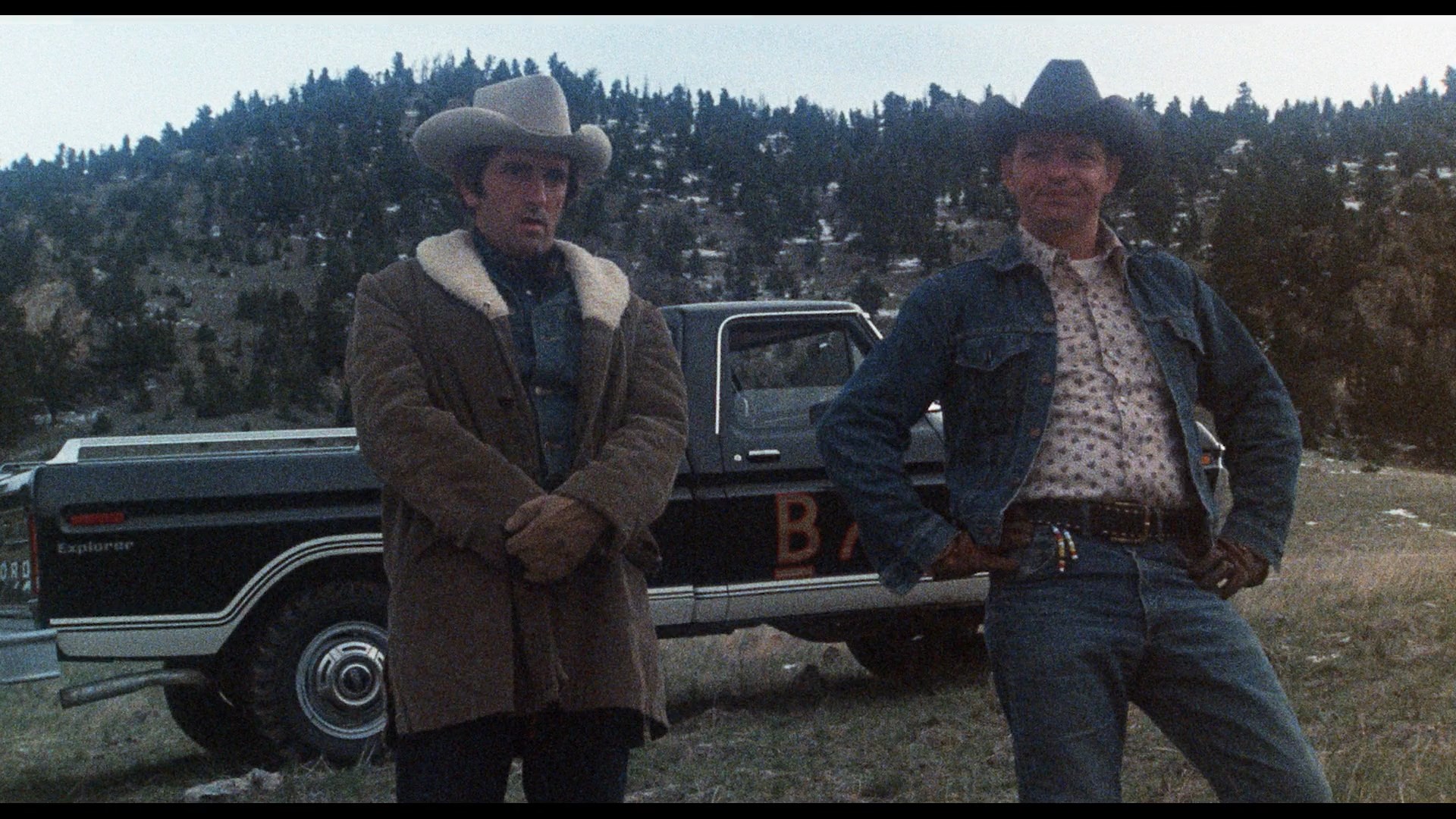 Following its theatrical release from United Artists, Rancho Deluxe has remained fairly easy to see over the years including VHS and DVD editions from MGM (as well as its inclusion in a couple of bargain multi-film editions devoted to Bridges from TGG Direct). An HD scan also popped up occasionally on the MGM HD channel, looking excessively noise reduced as with many of the other catalog titles that popped up on there. However, the film never got a special edition until the 2021 Blu-ray from Fun City Editions, who have tricked it out with a nice slate of extras that should answer pretty much any questions you might have. The transfer is listed as a 2K restoration from the 35mm interpositive, and it looks very true to the source with sharp detail and nice color throughout. Be aware though that this is a very, very grainy film, and that's been left intact here versus the previous unsuccessful attempts to scrub it all clean and shiny. The DTS-HD MA English 2.0 mono track sounds excellent and features optional English SDH subtitles. A new audio commentary by film critic Nick Pinterkton takes an informative deep dive into many aspects of the film including tidbits about all of the cast members, the background behind Buffett's involvement, the Montana location shooting, ties to other '70s films including its theme of rich kids rejecting their backgrounds, and some other Perry projects that never came to fruition. In "A Very Significant Movie" (21m13s), Bridges chats over Zoom with Fun City's Jonathan Hertzberg about meeting his wife during its production, falling in love with Montana (where he now owns a ranch house with a