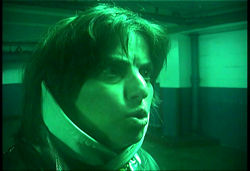 The main feature is presented on Heretic's DVD in a vivid full frame transfer; quality is quite nice throughout with the surprising flourishes of primary colors rendered quite nicely. Augmenting the main feature is a commentary with Coyula, Plotch, and co-star Jeff Pucillo, complete with numerous stories about resourceful shooting methods, friction between the performers, and tricks to generate atmosphere within the confines of found locations. The director returns for a video "making of," shown entirely in split screen for some reason, in which he comments on the film while various outtakes and other visual emphera pop around in segmented video screens. Also included is his earlier short film, "Valvula de luz (Light Wave)," a mostly nonsensical but visually interested combination of camcorder and digital footage coupled with an array of editing and video trickery. Finally you get a funny reel of outtakes (with some hilarious blurred-out nudity at the end), a batch of nicely shot but disposable deleted scenes, a director bio, storyboards, and the excellent original trailer.