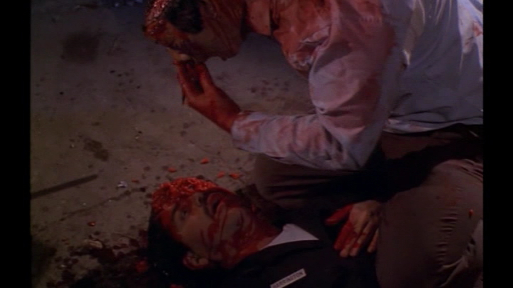 Trimark, the long-defunct studio who scored a major midnight hit with Peter Jackson's Dead-Alive in 1992, snapped this one up but barely got it into a handful of theaters around Halloween of '93, where it played in an R-rated edition dropping not only some nasty gore highlights (including some brain-splattering mayhem and a jolting lower lip ripping near the end) but, not surprisingly, some of the more prolonged and extreme moments of Julie's self-mutilation as well. Both the R-rated and unrated versions soon popped up on VHS and laserdisc in an okay full frame version from the company's video arm, Vidmark, where it managed to win over many buffs who'd felt burned by the second installment. Unfortunately its luck didn't hold out for long; when the DVD era kicked into full gear, the unrated version became almost impossible to find, with collectors hanging on to their old unrated copies for dear life. The rights passed over to Lionsgate, who released only the R-rated cut in a matted (1.85:1) transfer along with commentaries by Yuzna and Clarke, which salvage what is otherwise a disappointed (and now discontinued) release. The unrated version popped up on DVD occasionally in Europe (most notably in England and the German label Laser Paradise), ripped rather badly from the laserdisc and hardly worth the upgrade thanks to compression problems and generational loss. The announcement of a German Blu-Ray seemed like a dream come true, but that turned out to be a complete disaster; censored by over 20 minutes(!) and badly upconverted from the same old master, it's rivaled in worthlessness only by the same country's atrocious excuse for a Blu-Ray of Ninja III: The Domination.