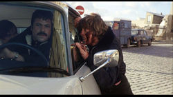 Acquired from a third party by drive-in favorites Independent-International Pictures, Revolver was distributed theatrically in 1974 in the United States. Initially tested under the title In the Name of Love with an ad campaign that played up Ollie's Women in Love romantic turn, it soon received a down n' dirty exploitation makeover becoming the more widely-known Blood in the Streets. Unfortunately, the new Dirty Harry/Death Wish-inspired marketing still didn't attract customers. According to I-I head honcho Sam Sherman, "The film played a minimum of dates and nobody wanted to book it, I couldn't give it away. Revolver did basically nothing for us in the U.S. and was a big waste of time. It didn't play any TV and the home video sales were also very poor. I had to keep drumming it into my head that if I really liked a film I had to stay away, because it would do nothing." Regardless of numbers, with a little digging the more adventurous VHS collector could turn up copies on I-I's Super Video offshoot. Once a nice addition to the shelf, this 1984 tape has now been officially rendered useless by Blue Underground's sterling DVD release. Frankly, this is one gorgeous disc. The picture is crisp with realistically rendered colors, and there's nary a blemish or compression flaw in sight. The 1.85:1 framing looks perfect and adds an essential amount of visual information to the sides when compared to the previous P&S tape. (For compositions set up this carefully, you need to see them in the proper ratio.) The mono soundtrack is clear and concise, without any noticeable background hissing to drown out the dialogue or Ennio Morricone's wonderful score. Completests will also be happy to note this new digital version runs approximately 40 seconds longer than the old prerecord (109m31s / 108m51s). The main addition is another half-minute of footage at the very onset of the film, as Fabio Testi and his partner are running from a bungled robbery. The remainder of the difference is comprised of various frames previously lost to print damage, including a brief dialogue snippet. It ain't much, but it's there nonetheless.