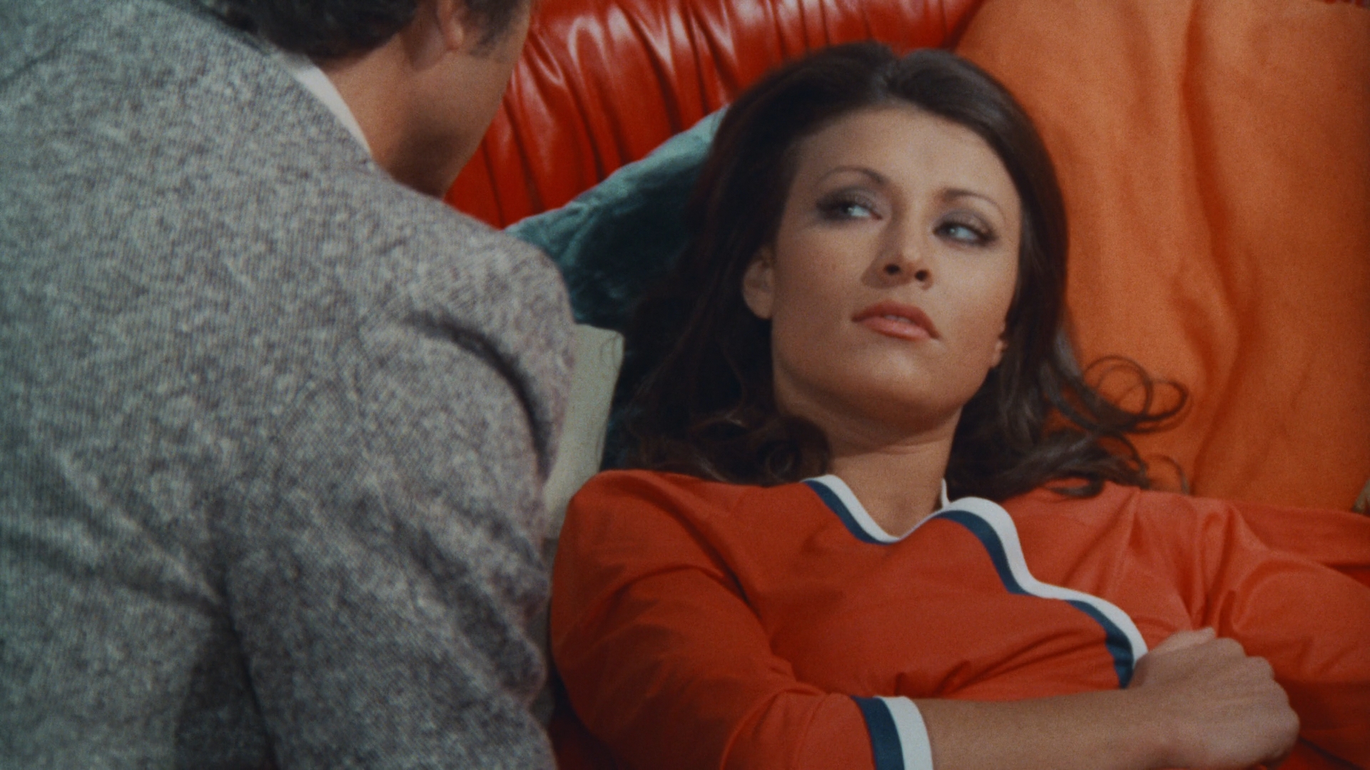 here (DTS-HD MA 2.0 mono) and sound solid, with optional English SDH or English-translated subtitles provided. The Mitchum interview is ported over here plus an HD English-language trailer (with the Italian title), plus three substantial new featurettes. In "Malisa of the Mob" (17m4s), Longo chats about her young days around Europe during the hippie