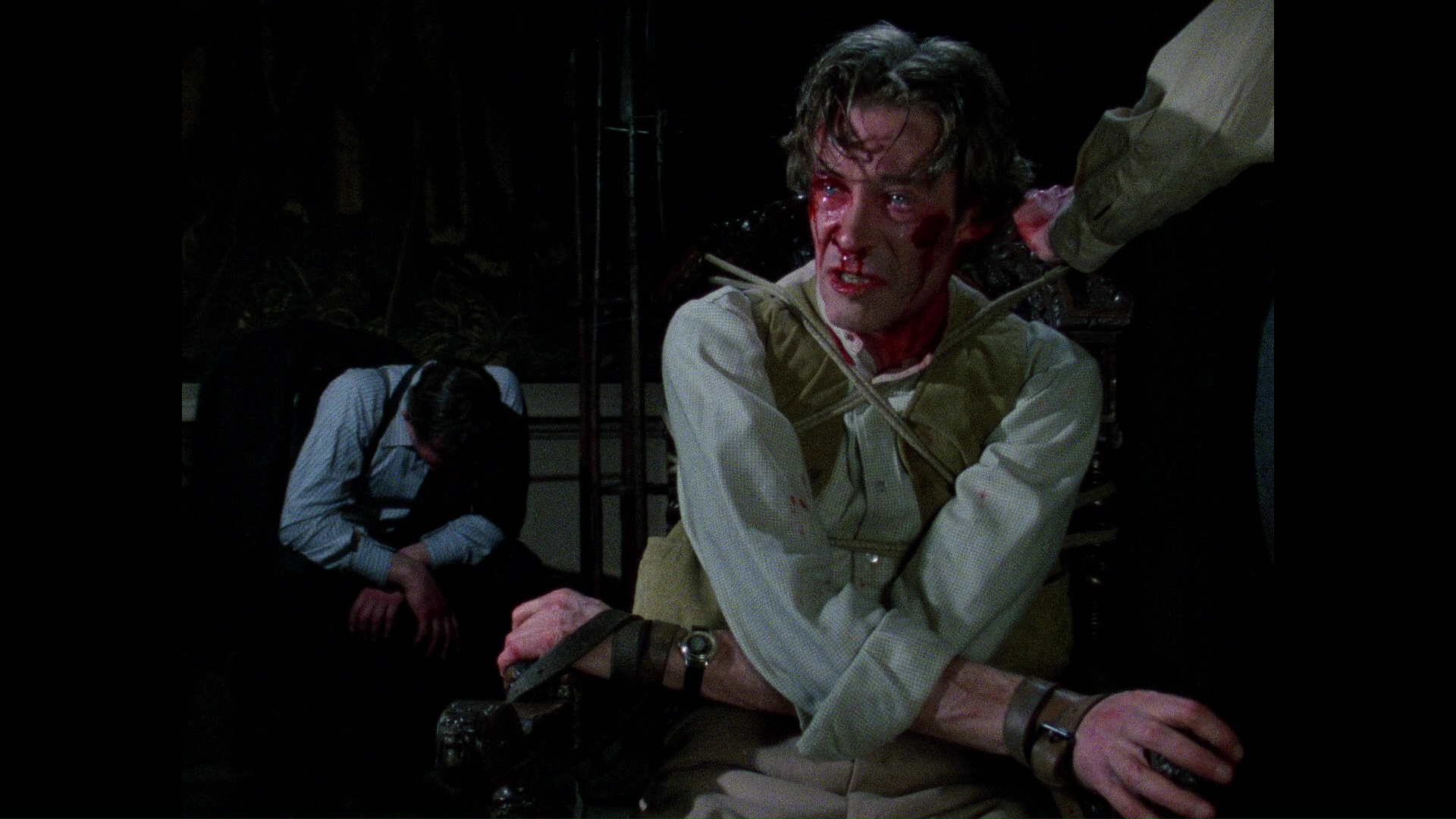 shot on 16mm on a limited TV budget, Rogue Male manages to hit a high quality level that could have made it indistinguishable from theatrical product of the era thanks to its skillful execution across the board. It's really O'Toole's show of course since he's in almost every scene, but the supporting cast is remarkable as well including a surprising turn by none other than Harold Pinter, a great scene in a Turkish bath with legendary character actor Alastair Sim as O'Toole's uncle, and the underrated John Standing (The Psychopath, 8 1/2 Women). Also effective is the subdued but atmospheric score by Christopher Gunning, who had already started off with a bang courtesy of Hands of the Ripper and Goodbye Gemini and would go on to find immense popularity with TV's Poirot.