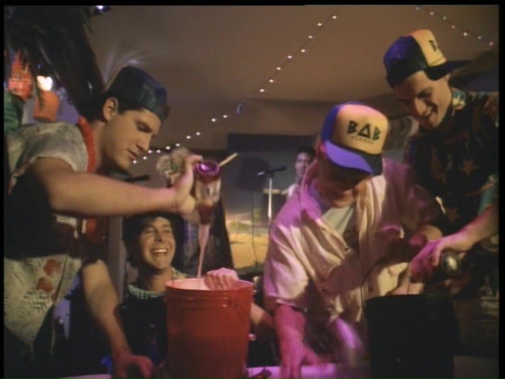 from a dated open matte video master that looked okay but unspectacular at the time with some slight image squeezing in evidence. In 20201, Vinegar Syndrome brought the film to Blu-ray (continuing its run of frat horrors after Pledge Night) featuring a new 2K scan and restoration from the 35mm interpositive (with the film somehow ending owned now by MGM under the umbrella of Orion). The Blu-ray looks significantly better with the scan bringing out detail and texture that was absent before, including natural film grain that retains the original gritty and sometimes rough appearance of the original film. Colors are bright and really pop at times, and any owners of the DVD should find this to be a significant upgrade. The restoration of the original matted compositions helps as well, bringing focus to a number of shots that seemed out of whack before. The DTS-HD MA 2.0 English track (with optional English SDH subtitles) sounds fine for the source, retaining the original Ultra Stereo mix which is essentially mono for the majority of the running time with some moderate channel separation turning up mainly during the music performances. The foursome from the long-running slasher movie podcast The Hysteria Continues! provide another fun audio commentary here chatting about campus slashers, late '80s horror, the comparative lack of gore, the sometimes puzzling home video release history, and much more. A new interview with actress Courtney Gebhart, "So 80's" (12m52s), is very upbeat and enthusiastic as she chats about her glee at getting to sing in the film, her early days as an actress, the process of shooting on 35mm on a low budget at the time, and her memories of her fellow actors as well as her director, veteran stunt man Bob Bralver. Then "Still Dean Hamilton" (12m58s) features the lead actor explaining how he came from Canada to L.A. and got started in soaps before plunging into this film, which was shot in a variety of locations around West Los Angeles (including a veterinary hospital) and allowed him and the rest of the cast to have a lot of fun during their party scenes.