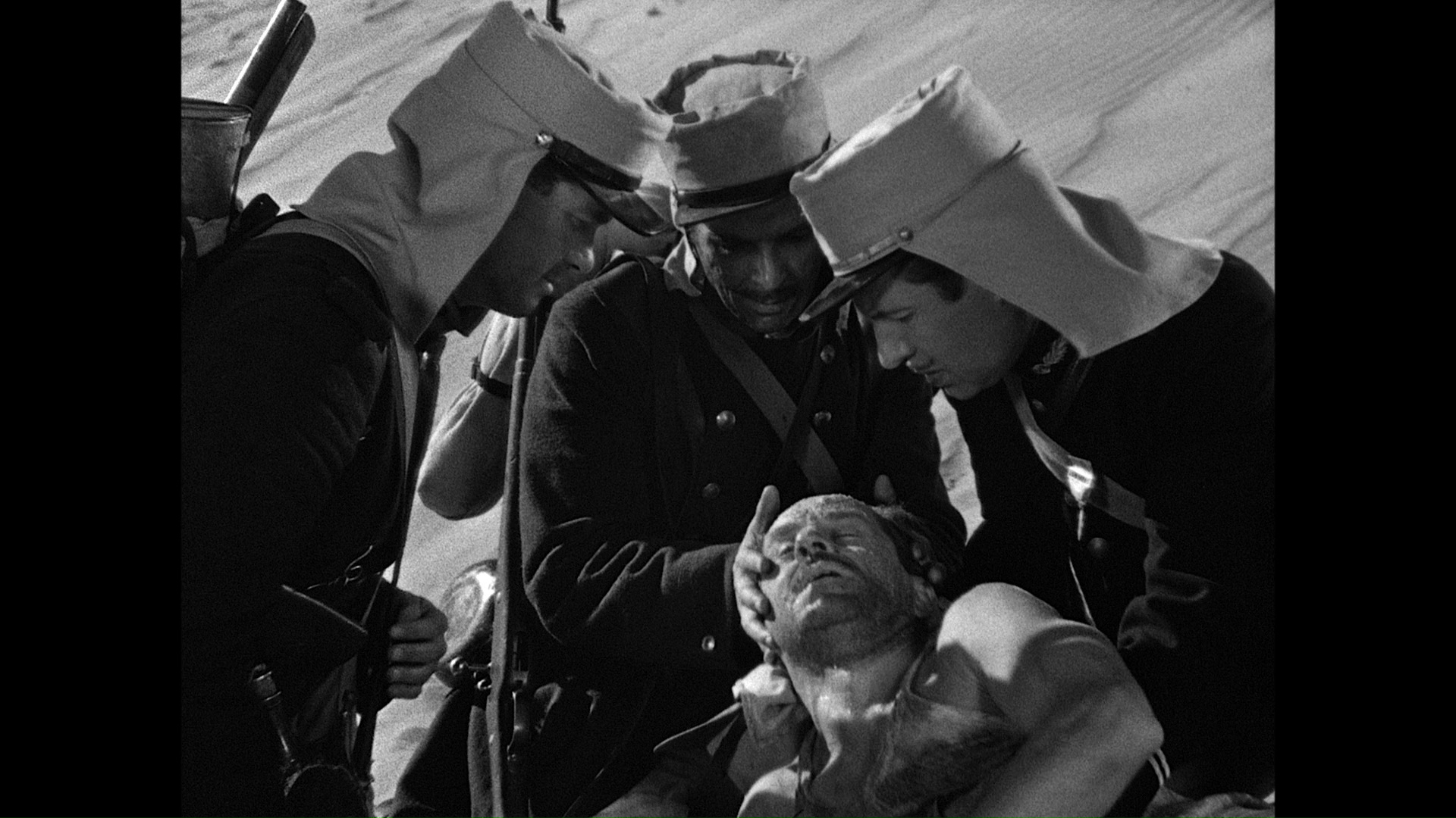 as a feature at just under an hour and obviously made to fill out double and triple bill requirements, the following year's Adventure in Sahara is based on a Fuller story about a French desert outpost where pilot Jim Wilson (Kelly) has enlisted as a legionnaire to find out what happened to his late brother under the command of the sadistic Savatt (Gordon). When the commander turns out to be every bit as awful as Jim feared and with his girlfriend, Carla (Gray), stranded nearby as she tracks his whereabouts, it isn't long before Jim is forced to cross the desert on minimal rations and lead a rebellion to bring justice in more ways than one. A typical studio slot filler, it's an entertaining if entirely disposable adventure pilfering elements of recent hit films (including, as most critics noticed, Mutiny on the Bounty) and functioning as the movie equivalent of a thin paperback men's adventure novel.