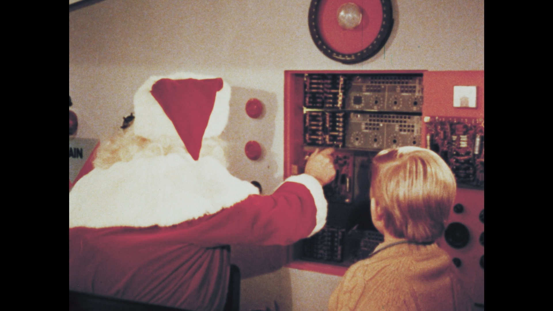 The first Blu-ray of this infamous stocking stuffer came along from Kino Lorber in 2013, with a bumpy initial pressing pulled after it turned out a master was used with 20 minutes missing. The corrected version didn't stay around for long and now goes for a hefty price, though the DVD option is still available. Extras include a newly created trailer, a stills gallery, and a "Santa's Cool Holiday Film Festival" (46m17s) reel of holiday-themed classic cartoons, commercials, and short subjects. In 2024, AGFA and Something Weird Video teamed up for a new Blu-ray edition released as Santa Claus Conquers the Martians and Other Holiday Hallucinations, this time presenting a "roadshow" version of the film from SWV's 16mm print. The film is preceded by six minutes of newly-scanned Christmas theatrical bumpers including a great 1971 one and a K. Gordon Murray compilation feature, Santa's Giant Film Festival of the Brothers Grimm. The main feature is also interrupted by an amusing intermission featuring a certain retired Oscar winner doing a Christmas Seals pitch. Transfer-wise it's quite different from the Kino Lorber in terms of color timing, as you can see from the comparison below; this