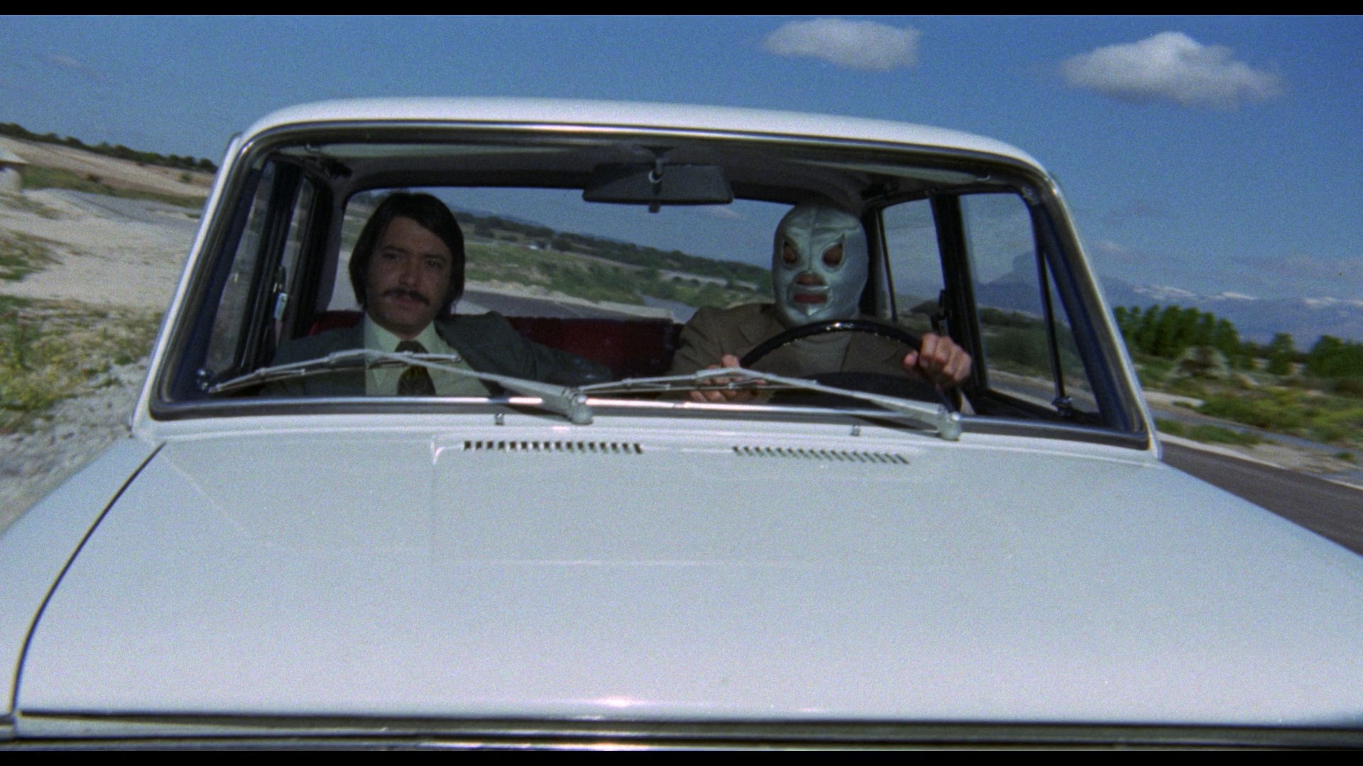 Though many Santo films weren't blessed with English dubs at the time, this one was and made the rounds a little more widely. While Santo DVD and especially Blu-ray releases before this were a very mixed batch, the 2022 Vinegar Syndrome Blu-ray features the best of all possible worlds with an impressive 2K restoration from the camera negative Santo vs. Dr. Deathand both the original Spanish and English-dubbed tracks with English SHD or English-translated subtitles. Santo vs. Dr. DeathBoth language options are enjoyable with the English dub adding to that Euro-cult vibe throughout. Also included are the alternate English main titles as Masked Man Strikes Again (Santo vs. the Dr Death) (sic), a gallery of posters and lobby cards (32s), and the Spanish and English trailers. The most robust extra is a video essay by Orlando Jimenez (14m11s), "the masked critic," about writer-director Rafael Romero Marchant's contributions to fantastic cinema, the prevalence of Spanish actors versus the scant Mexican personnel, the influence of the classic The Saint character, and some of the signature locations.