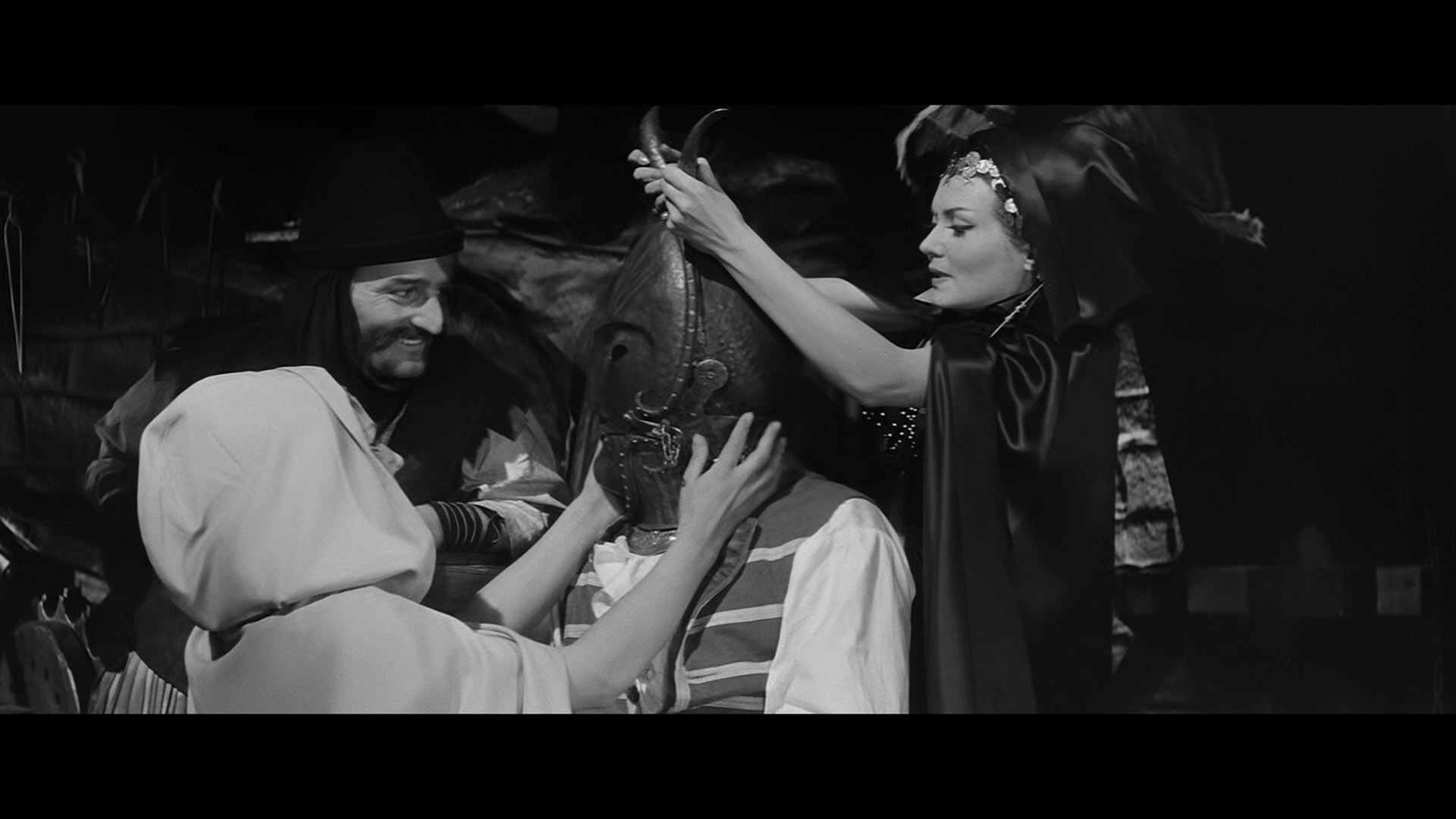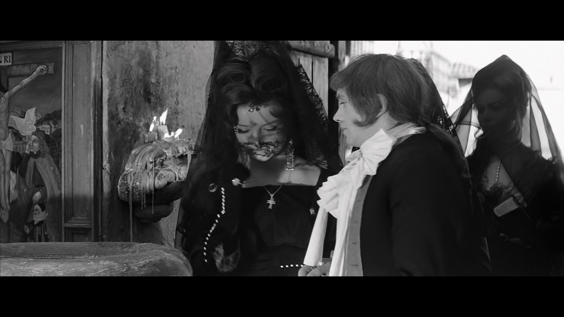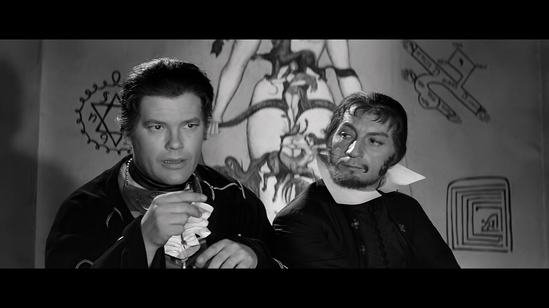 identical restoration preserving the essential scope framing, which comes with some baked-in "CinemaScope mumps" (horizontal distortion) due to the lenses used during production. An intermission break has always been present in the full cut, and this is the only Blu-ray that actually splits the film into two separate files running 102m41s and 80m47s. The Polish DTS-HD MA 2.0 mono track is also in fine condition and features optional yellow English subtitles. The disc comes with a booklet featuring two essays, Insdorf's "The Saragossa Manuscript: Incertitude and Internal Rhymes" (about the film's significance to Polish audiences, its use of Jewish tropes, and the hidden possible meanings of its serpentine structure) and Atnon Bitel's "Lost in History" (covering ties to other anthology publications, the use of twin allusions, and the various meanings of the title itself.