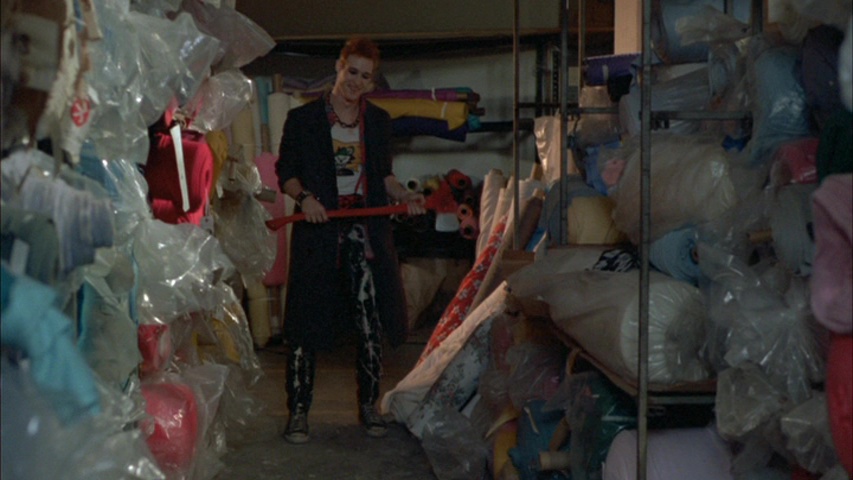 career and brainstorming problems on the set, not to mention showing off his scripted idea for a sequel; Strong (12 mins.), going into more detail about such issues as the sudden lack of money during production and addressing Steinmann's open "trash talking" about Strong on the now-infamous commentary track; actor Sal Landi (9 mins.), who played Fargo and shares his memories of the set including some much-needed discipline; actor Scott Mayers (12 mins.), who played Red, discusses how he got his role without an agent and his fun times on the set; and Venocur (9 mins.), who recalls wanting to hug "cutie" Blair and working comfortably with Quigley on the rape scene, which initially earned the film an X rating. The disc rounds out with two Red Shirt Pictures video interviews from the previous release, a great 17-minute featurette with Blair (who shares her favorite line of dialogue, discusses the music and editing, and enthusiastically explains how the movie went over with a theatrical audience in New York), and Quigley (10 mins.), who talks about some of the physical challenges passing for Blair's younger sister, being a Blair fan, having to stay silent during the rape scene, and getting caught on a cast mate's button during the basketball court scene.
