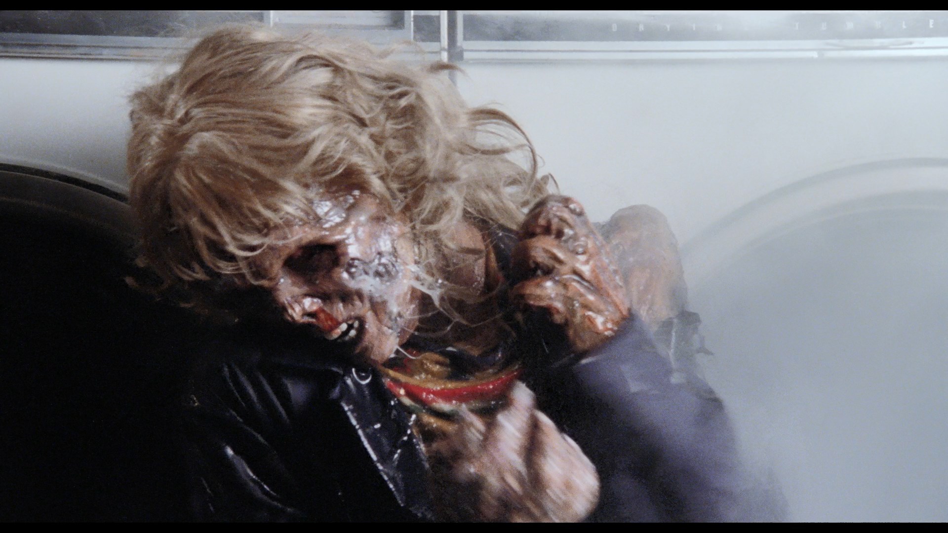 the more outre moments involving two people being zapped at once. Between the Blu-rays you get a solid two-part documentary about the films, Elijah Drenner's "Outside the Law: The Scanner Cop Revolution Part One" (22m9s) and "Part Two" (28m13s) with David, horror writer-director Simon Barrett (who's surprisingly down on the original film), Grove, Barnett, stunt coordinator Jeff Pruitt, Shepard (who says she based her look on Shakespear's Sister!), Haje, Kilpatrick, Bowers, Stephen Mendel, and special effects artists James Rohland, Tom Irvin, and Ted Haines covering tons of stories about both films from the hand-crafted makeup effects designed to rise to the challenge of the scripts to the dedication Quinn brought to his character, as well as the benefits of shooting almost entirely at night for the second film. Also included are a VHS-sourced promotional video (4m22s) for the first film hawking it to retail buyers (which will be a serious blast from the past for anyone who worked at a video store back in the mid-'90s, and hopefully someone actually tried the police siren gag they propose) and a standard theatrical trailer for the second.
