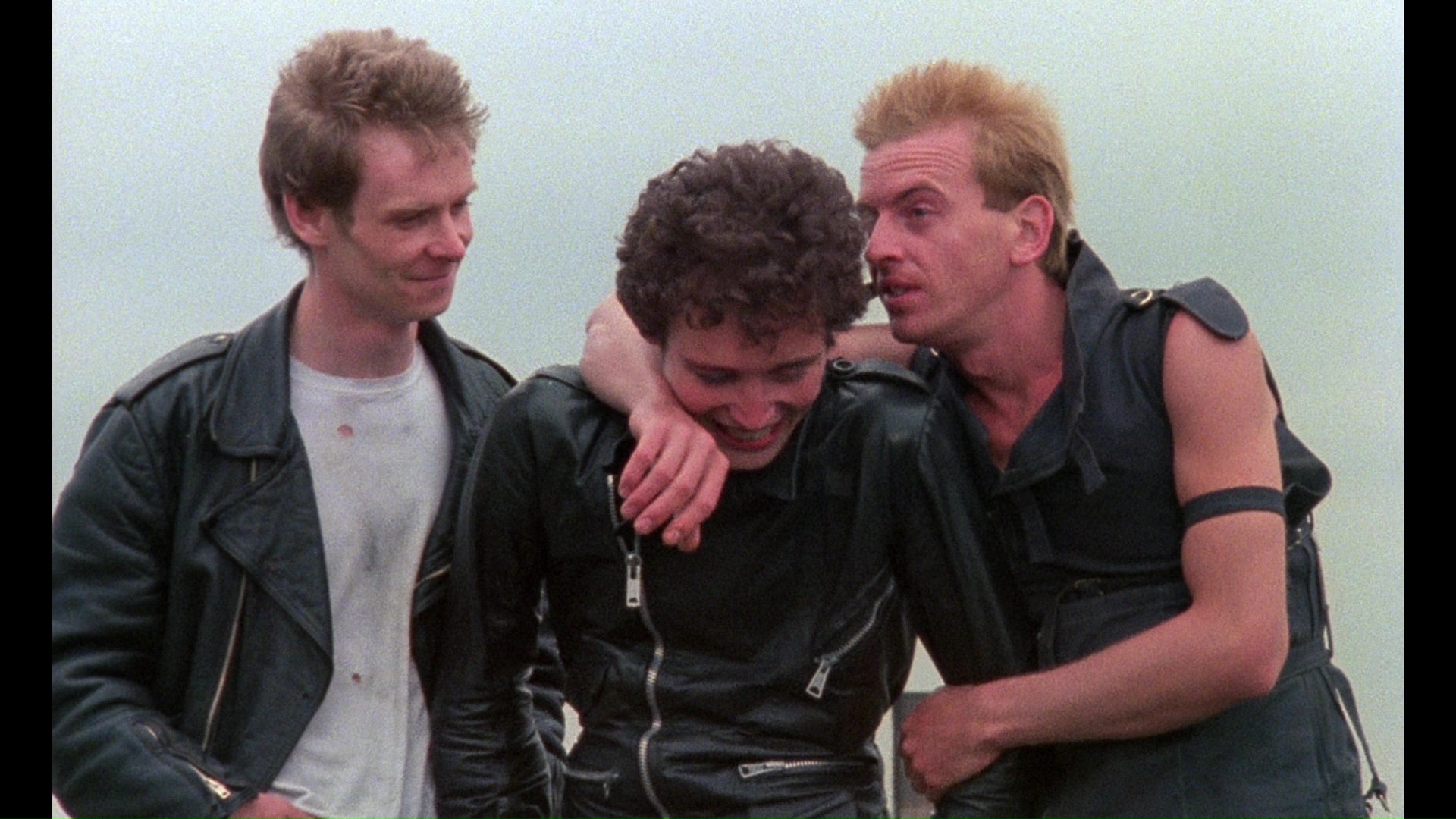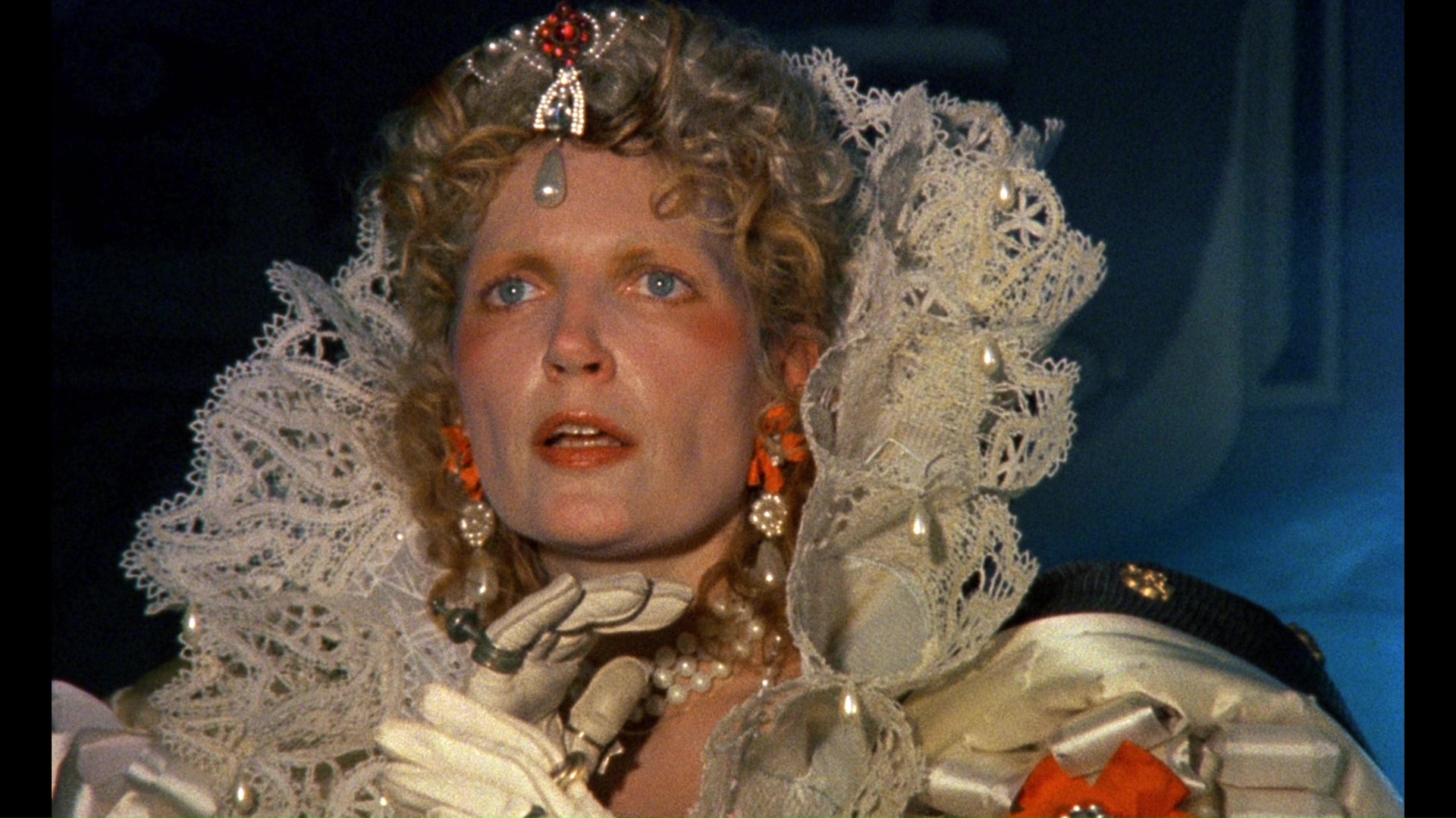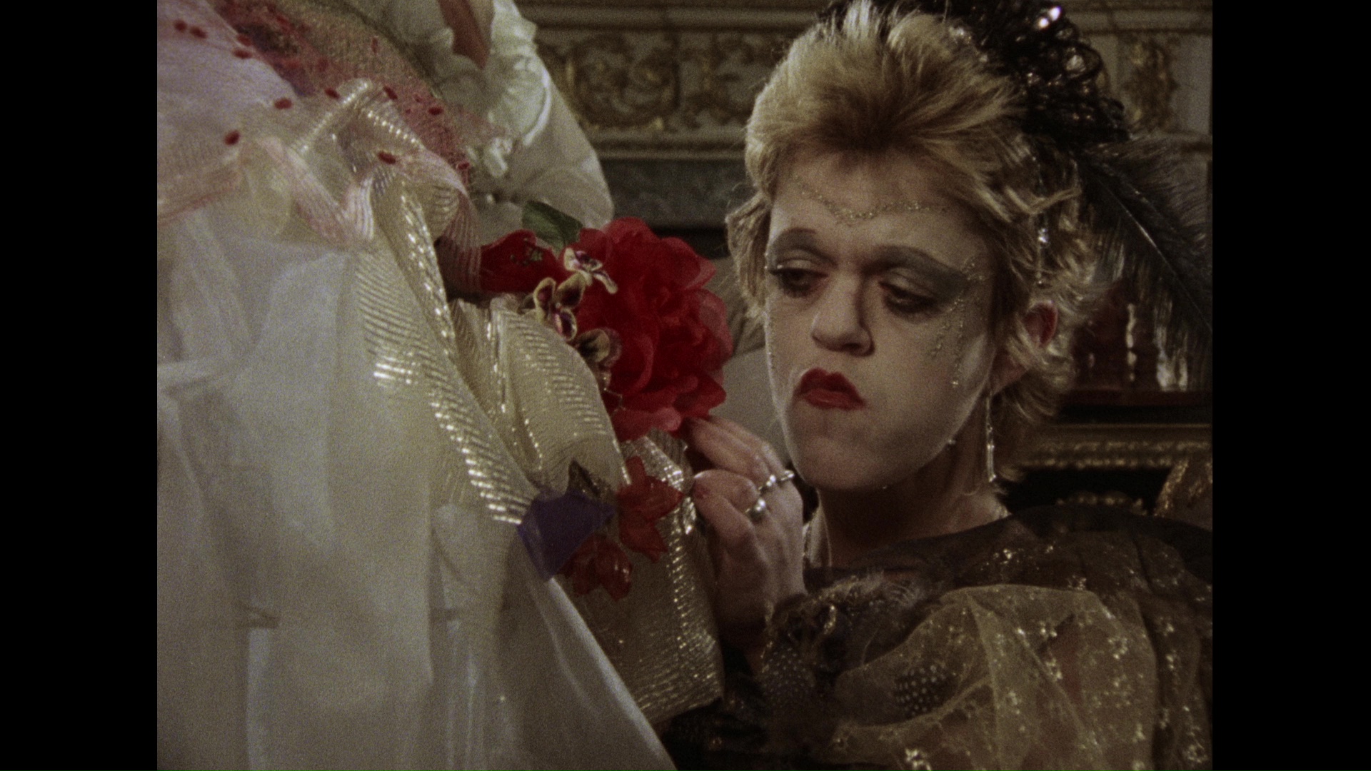 British filmmakers were giddily overturning the relationship between music and cinema during the 1970s, Jarman entered this tricky arena with Jubilee, a complicated, challenging look at a punked-out, pre-Thatcher England that groups together an odd assortment of music and theatre personalities for a one-of-a-kind experience. The story, what little there is, concerns the journey of Queen Elizabeth I (Runacre) who, thanks to a ghostly white angel (StageFright’s Brandon), travels through time to a Britain torn apart by gangs and punk anarchy. Violence and sexual decadence are the order of the day for this crumbling land populated by a weird gallery of characters: Mad (pop singer Wilcox), an aspiring singer with neon orange hair and baby fat who belts out her tunes in a blitzed out Buckingham Palace; Angel (Opera’s Charleson, who later disowned the film), a pansexual bleach blond youth; Amyl Nitrate (Jordan), a vicious female gang leader; and Kid (a very young Adam Ant), a leather-clad lad who becomes the object of several characters’ fixations. Rocky Horror veterans Richard O’Brien (in whacked out period dress) and “Little Nell” Campbell also hop along for the ride, which includes a gruesome sexual asphyxia murder, rampant destruction of public property, a nightclub orgy, and some very catchy songs.