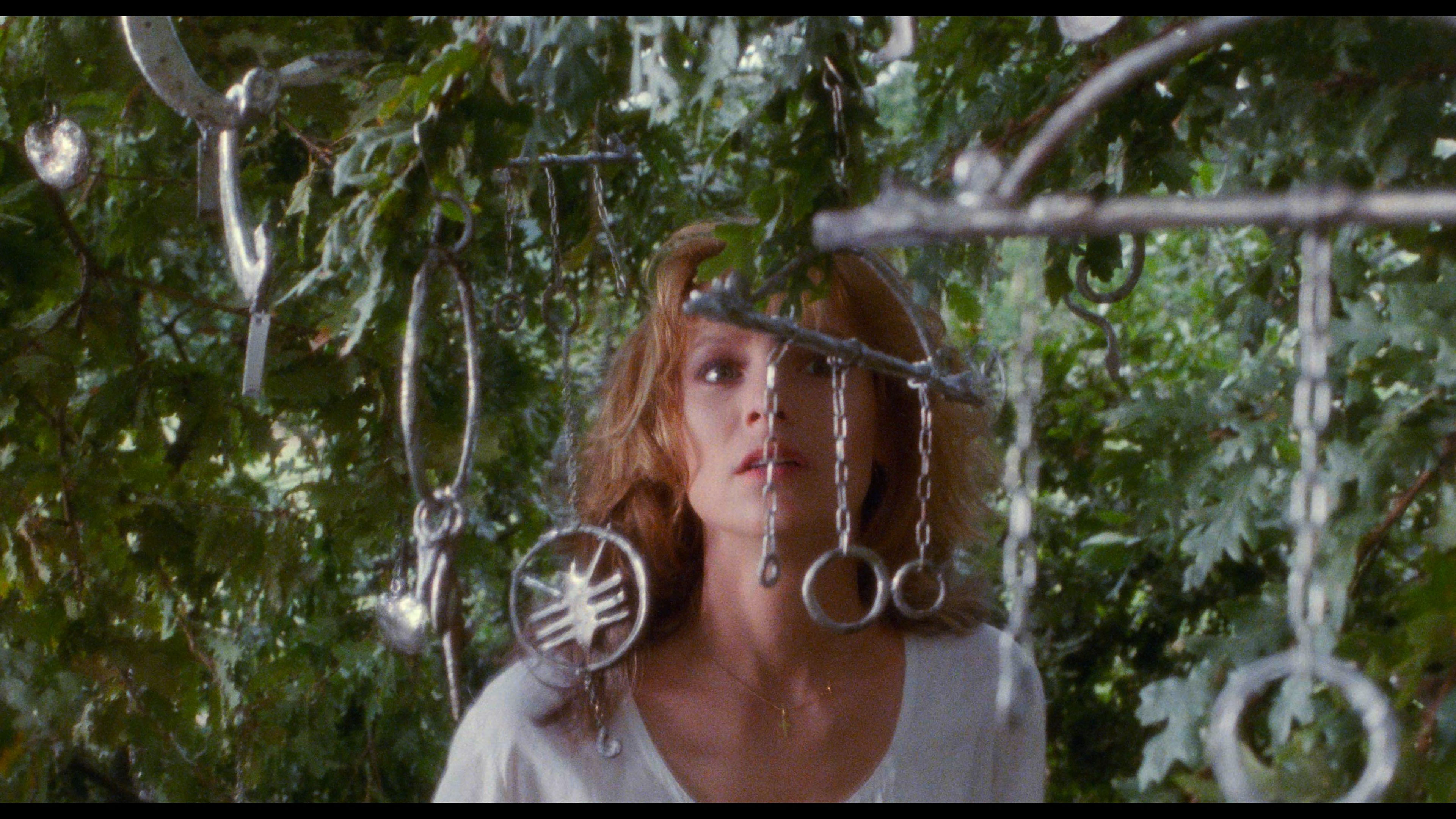 A U.K. Blu-ray release from Shameless came around in 2017, with a simultaneous DVD edition sporting completely different cover art. The transfer features a new 2K scan from the original negative, featuring the English-language The Sectopening and closing titles (including that wince-worthy "and whit" at the end). The film is easily the most visually peculiar of the Soavi cycle with a soft, hazy, vaguely druggy sheen to it that's proven very challenging to transfer to the small screen before. This one looks better than the earlier DVD with that troublesome orange toned way down, and with visible image info visible on the sides as well. However, blacks are very flat and gray, taking quite a bit of punch out of the imagery, and detail is often quite soft (with some horizontal squashing evident). Contrary to the "PAL" designation on the back of the sleeve, the film is presented at its correct original film speed. The feature was intended to be released in English with Curtis and Lom providing their own voices (and everyone else dubbed, though the actors spoke English on the set), but that mix is one of the weakest of its generation with a flat soundtrack seriously dampening the music and causing the dialogue to sound utterly bland and disaffected. That English track is here as an LPCM mono option, but the big plus here is the DTS-HD MA Italian "5.1" track (with optional yellow English subtitles). It's actually still mono but vastly superior track in every possible way; the dialogue is more dynamic and beautifully recorded, sound effects are crisp and effective, and the music now has much more presence and range. It really gives the film some much-needed punch and makes for a far more enjoyable viewing option. The main new extra here is "Beauty and Terror," a 29-minute interview with Soavi from the same session as his interview featured on The Church. He starts off chatting about working with Lucio Fulci and Joe D'Amato before shifting to a look at how this film came about, including anecdotes about the inspiration of catacombs at his own house and the process of casting Kelly Curtis. His story about wrangling that giant demon bird is fun, too, and he reveals which images and story points were contributed by Argento. Also included are bonus promos for The Church, Dellamorte Dellamore, and Four Flies on Grey Velvet.