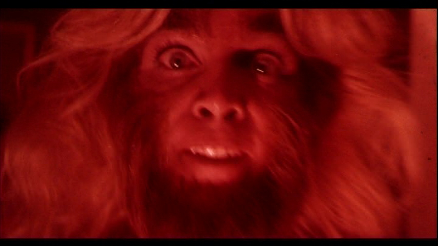 The anti-heroine of the film is young, blonde Letizia (late sexploitation regular Gonella), who's been left at a boarding school after the death of her parents. Her businessman uncle, Marcello (Tinti, the late significant other of Laura Gemser), and his wife Micaela (Satanik's Konopka), take her into their home and promise to treat her like their own child. However, we know something's amiss right away when the house manservant, Giovanni (Patrick Still Lives' Dei), stumbles upon her naked in her bedroom -- only to see her fleetingly turn into a hairy-faced beast. The encounter quickly spoils his love life with the maid, Giselle (Fiedler), who falls under Letizia's suggestion to try out lesbiansim ("At the boarding school, you have to make do") and makes an unsuccessful move on Micaela in the bedroom. Meanwhile Letizia does horrible things like telekinetically moving pillows and ashtrays and forcing her uncle's business partner to splash water on himself at dinner, but after getting attacked (or carted around, or something like that) by a bunch of hippies in a field, she
