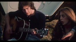Another claim on the packaging is the fact that this DVD was made with the last surviving 35mm elements, which may very well be the case since this doesn't seem to have played anywhere outside of Italy or turned up on home video in any format before. (If anyone can supply info to the contrary, please share; there has to be a story behind the fate of this one.) The print has obviously been through a lot of wear and tear, including some very rough reel changes; there's also an obvious few seconds missing at the 18-minute mark (due to print damage) that render one scene senseless, and the hippie attack 36 minutes in actually slides halfway out of frame for a couple of shots! These blatant caveats aside, the color has actually remained well preserved, and the whole thing is still watchable in a trashy sort of way. The optional English subtitles are generally good, though a few phrases are bound to elicit confusion ("You're thinking to that soppy one, too!"). A pretty wild theatrical trailer (from a vastly inferior source, alas) is also included, featuring an extended version of the funky Casio-infused main theme.