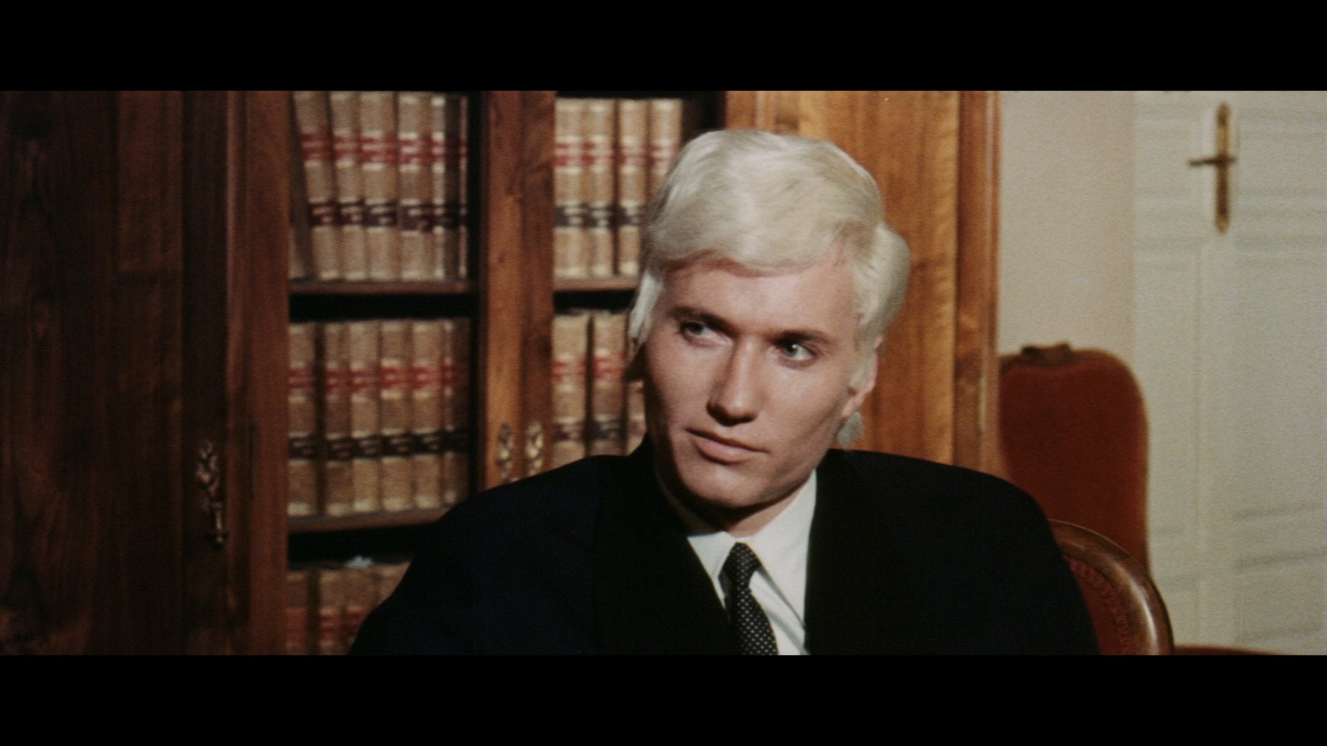 A very odd viewing experience, The Horrible Sexy Vampire seems like it should be an opulent European chiller with its widescreen photography and sometimes snowy, scenic Stuttgart setting. However, director José Luis Madrid opts for a languid pace with scenes of old men chatting at desks or wandering around with an occasional burst of topless strangulation murder thrown in. (For some reason the fang and blood action here is nonexistent.) It's quite amusing though if you're in the right mood, especially when it comes to the spectacle of a stake-wielding Davis pretending to fight his invisible ancestor by flailing around a room. The film is also a lot more interesting when you bear in mind that high society