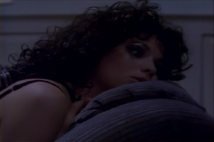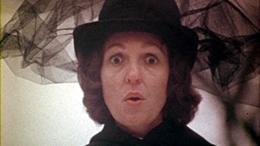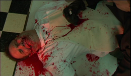 Short films tend to lend themselves to more narrative experimentation than feature films given the amount of time and money involved, and one of the most unusual efforts you'll come across on that front is Beneath the Veneer of a Murder, an eight-minute combination of pseudo-snuff exploitation and heady radio play-style thriller from director Angel Connell, who's been doing shorts like "She's So Cold" and "Stocking Stuffers" for the past couple of decades. Only two people actually appear on camera, Eric Scheiner and Christy Scott Cashman, for the sole live action scene in which a woman is murdered in front of a television set. However, the rest of the film involves onscreen quotes and voiceover telephone convesations laying out the action before and after, involving a political bigwig and an odd marital scenario that twists around to something a little different than your average thrill murder. It's a pretty audacious structural decision that will probably alienate a lot of unprepared viewers, but if you go along with it, this is definitely not your average horror short. You have to focus -- a lot -- to get what's going on in the short running time, so make sure you're paying attention when the opening credits first appear.