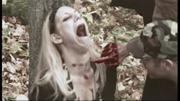 A hodgepodge of pretty much every horror-in-the-woods movie you can think of before 1982, Psycho Holocaust depicts the horror that befalls six young people who head out of town for a weekend of R&R only to be besieged by three psychos, one of them in a burlap hood. Yeah, this story's been done about eighty billion times before, but I guarantee you've never seen anything like the last 20 minutes of this film, a twisted and blood-sprayed extended set piece that begins with a dinner table, a prosthetic butt, and a saw, then just goes downhill from there. The military/survivalist bent of the villains gives the film a bit of a different spin, too, but the real attraction here is the gore, which gets sprayed on in gallons all over the cast. Surprisingly, the score is provided by retro-Italian homage group Giallos Flame, whose albums have been big on the horror con circuit for years. Director Krist Rufty provides a chipper and informative commentary track for Independent Entertainment's DVD, whose transfer does what it can with the very limited digital video material. (It doesn't look like the white balance was checked very accurately for most of the film, unfortuantely, or it's a seriously weird transfer.) You also get a 15-minute making-of featurette, a batch of cast and crew interviews oddly titled "Making Cheesy Movies in Wisconsin," a much looser and more rambling extra half hours of more interviews from the set, eight minutes of trimmed footage, and a pointless "At Home with Billy Garbernia" video piece with one of the lead actors spouting off for the camera.