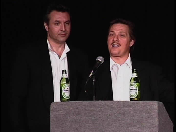 How much one subscribes to the "so bad it's good" philosophy is still a matter of taste, with everything from The Golden Turkey Awards to Mystery Science Theater 3000 and its imitators inspiring multiple generations now of snarky viewer behavior. Joining the fray is the Midnight Marquee DVD release of The Ed Wood Awards, a celebration of the "worst" films around hosted by Ted A. Bohus and Fred Olen Ray. It's actually more valuable as an artifact of the departed Fanex Convention, a horror/sci-fi celebration usually held in the Baltimore area and notable for its policy of not having prestigious guests charge money for autographs. (Needless to say, that's a far cry from what we see today.) As the hosts swig Heineken and deal with copious a/v issues, they unspool a number of clips from a variety of films (Night of the Lepus, God Monster of Indian Flats, The Boneyard, The Brain from Planet Arous, The Amazing Colossal Man, Yeti, Frankenstein's Castle of Freaks, The Alligator People, and many more) and present the awards in various categories like "Vegetable Most Past Its Expiration Date" (won by From Hell It Came, in case you were wondering). There are also a handful of new goodies like the amateur spoof Plan B- from Outer Space, and not surprisingly, the work of Al Adamson, Ray Dennis Steckler, and Roger Corman seems to dominate here. The actual ceremony clocks in just under an hour, while another hour of the disc is filled out with extras like "The History of the Horror Films" (in Amazing Dollovision!), a survey of the genre from Universal and Hammer to the mid-'90s using vintage monster dolls and miniature sets, with a few unexpected bits like recreations of Psycho, The Exorcist, Hollywood Chainsaw Hookers, The Deadly Spawn, and Blood Feast. There's also a "Guilty Pleasures of the Horror Film" from 1991's Fanex 5 with panelists citing personal favorites like Shriek of the Mutilated and Nude on the Moon.