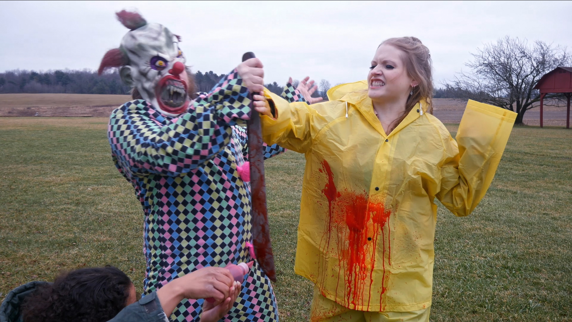 of amateur actors in the Pennsylvania boonies. On top of that this was made with the involvement of Cleopatra Records (who distribute the Blu-ray and DVD), which means lots of their music acts turn up on the soundtrack. Our plot involves a drug deal gone bad that leads to a stockbroker getting nipped by a werewolf, who then gets jacked up on cocaine and goes on a rampage in the woods. Meanwhile some micro-budget horror filmmakers are busy nearby making a clown slasher movie, which leads to some meta fun as their production keeps getting sabotaged by the lycanthropic trespasser. Yes, this is a super cheap and ridiculous film with some of the most ridiculous CGI blood spatters you've ever seen, but it's always fun seeing Polonia doing his thing with lots of heart and minimal resources. The Blu-ray looks as good as you'd expect for something shot on HD video, and it also features a Polonia audio commentary you can't get on the DVD. He's a fun listen as always ("He's higher than a kite and ready to fight!"), and most importantly, he explains the bizarre stinger at the end that ended up being compromised in the execution. (Spoiler: Cocaine Frankenstein!) Also included are a slideshow, a trailer, and bonus trailers for The Black Mass, What the Waters Left Behind: Scars, Long Dark Trail, The Ghosts of Monday, Frost, and AK Tolstoy's A Taste of Blood. Buy from MVD or buy from Diabolik.