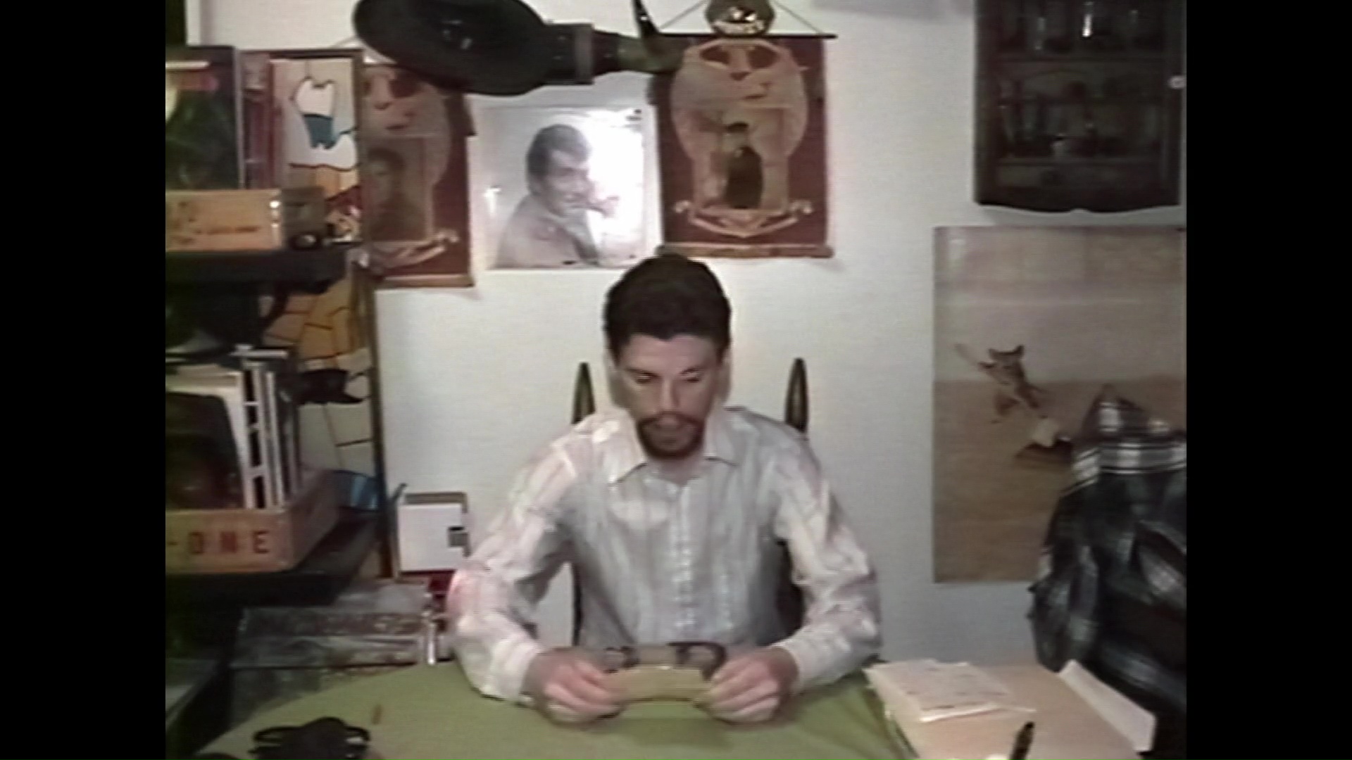 minutes of camcorder-filmed Indiana mood with tons of denim, head scarves, and a scene-stealing pet parakeet often distracting you from the supposed narrative involving a Jack the Ripper copycat on the loose. The killer's getup is pure giallo complete with a duster, black hat and mask, and black gloves, and it has a weirdly hypnotic vibe if you go with it and enjoy some occasional stabs at visual artistry involving mirrors and odd framing. You also get his first film, the near two-hour The Card Game (1987) with Reeves as one of the stars in a tale set in 1980 Reno that, as he himself admits, is a black-and-white micro-budget remake of 5 Card Stud (in which an accused card cheat gets lynched with the attackers all being killed off). It's a long, fuzzy-looking haul with a lot of personality and a very unorthodox structure for its end credits. The one-hour Who Shot Mean B.R.? (1993) feels like a private in-joke and serves as a very belated shout out to the TV show Dallas with a clerk (at Reeves' real convenience store, the Dugout) banging his head and turning into a version of Larry Hagman's character, which of course provokes someone into taking a shot at him. Also coming in at hour but more padded and trippy is 1997's The Gutwrencher, which involves a young man named Paul who keeps having nightmares about a couple of paroled criminals homicidally working their way to his own house. That's pretty much it, but the monochrome photography and droning atmosphere give it a certain