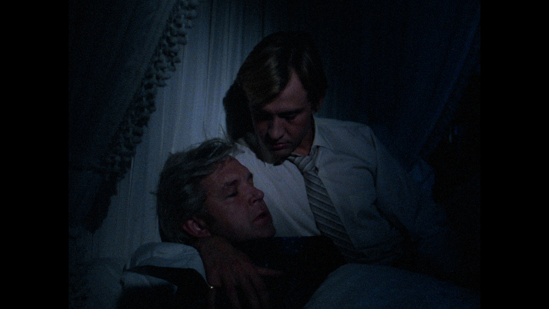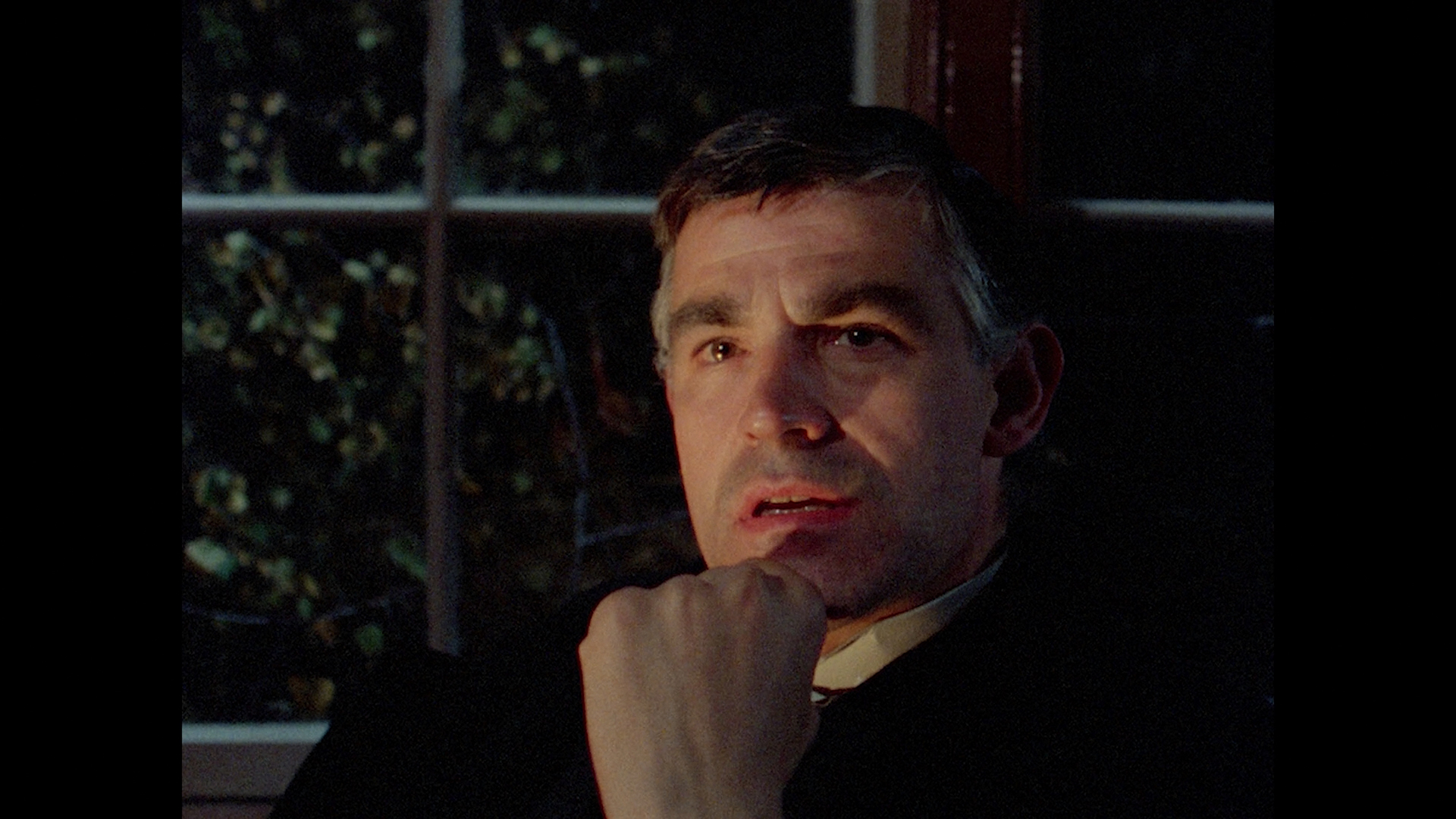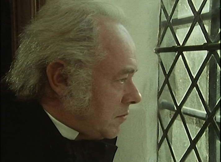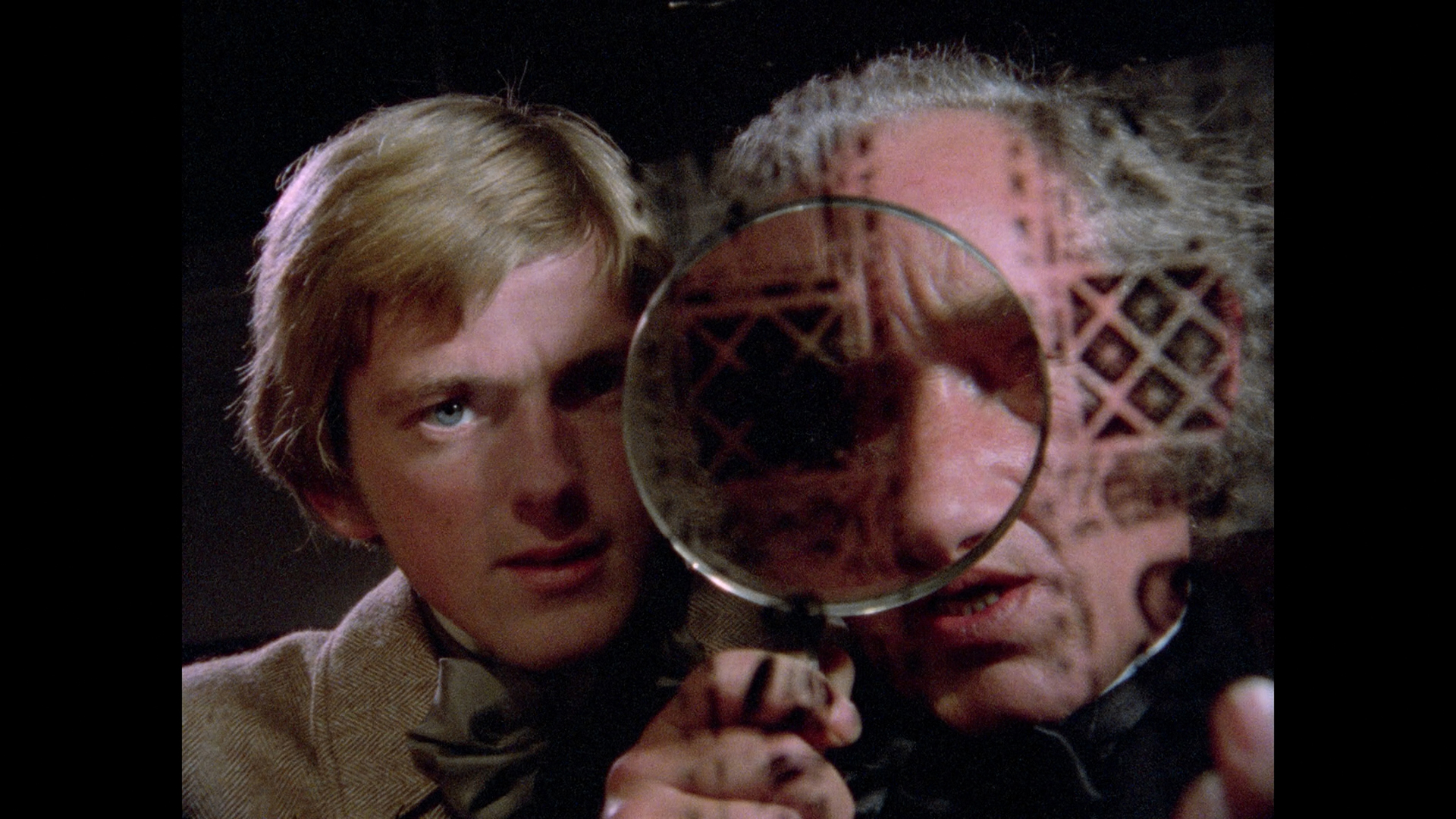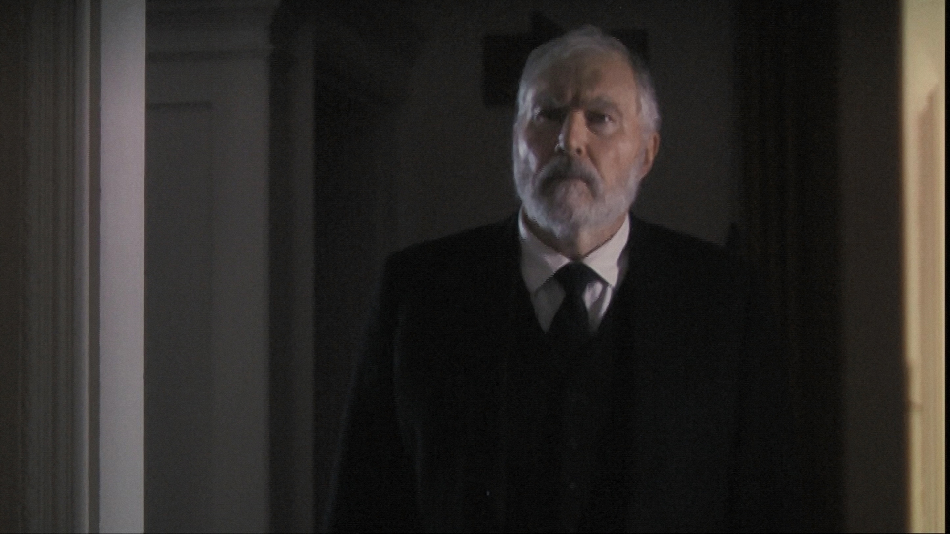 By the mid-1970s, the annual TV ritual was bound to change after a succession of M.R. James adaptations. The 1976 entry was originally planned as James' "Count Magnus" (eventually filmed in 2022), but budgetary costs sent them searching for a new short story to adapt. The choice was made to tackle Charles Dickens' classic tale The Signalman, a short and chilling two-character piece that could easily be filmed in the English countryside with a minimum of actors. Fortunately the result, which kicks off the second Blu-ray, turned out to be one of the best in the series (in fact, it's a favorite of many), thanks in no small part to its sterling performance by Denholm Elliott and an underrated but effective one by TV actor Bernard Lloyd. It also didn't hurt that this was one of the earlier writing credits for Andrew Davies, who went on to write the terrific (and maddeningly still unavailable) BBC thriller Mother Love and the definitive version of Pride and Prejudice. (He also wrote the Bridget Jones movies, but everyone has to pay the rent.)