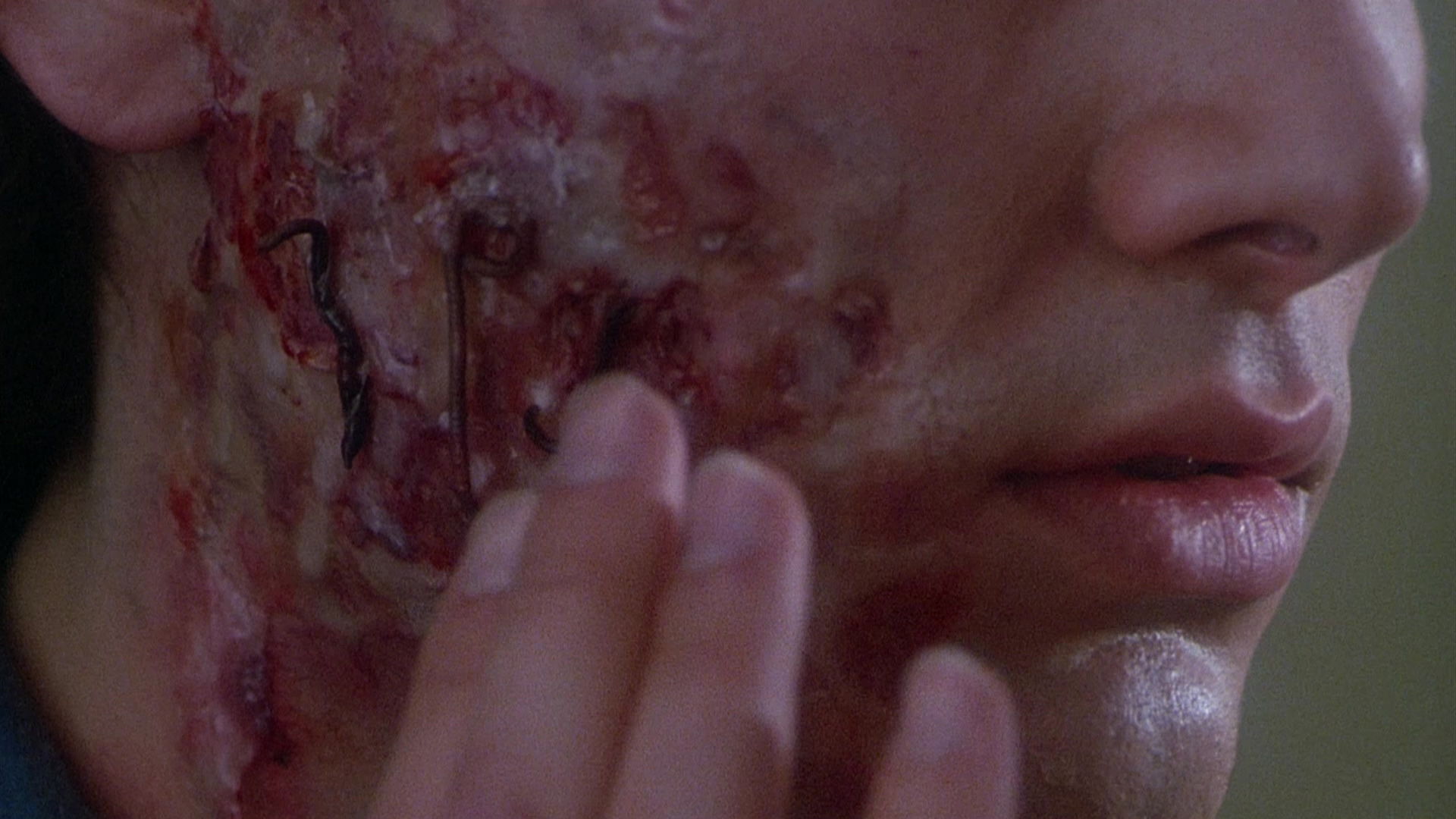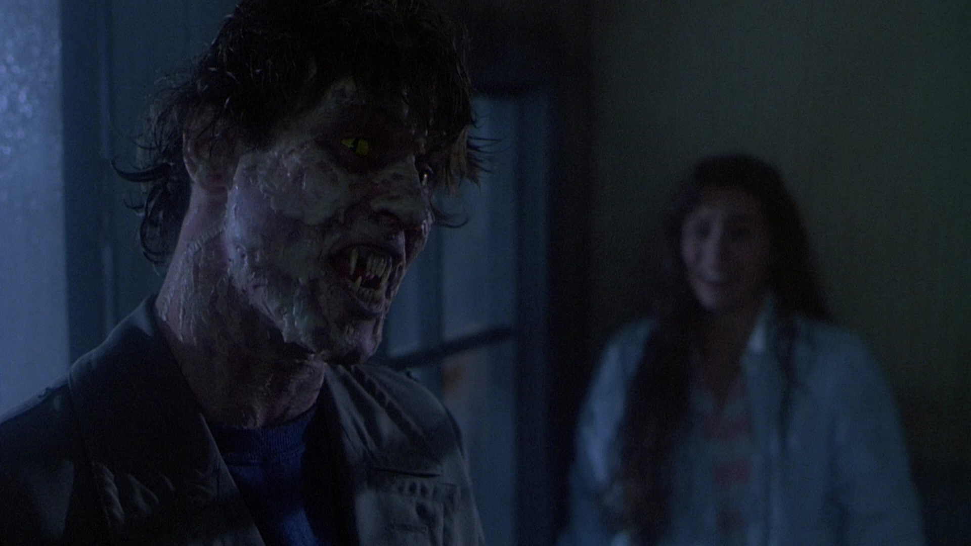 The Vinegar Syndrome disc features a fresh scan from negative and actually represents the extended cut of the film, clocking in several seconds longer with a smattering of extra blood. Visually it looks similar during daylight scenes and varies during the darker ones, sometimes sharper and brighter and at other looking about the same or darker. The DTS-HD MA English 2.0 stereo track sounds excellent with a bit more heft and channel separation than before, with English SDH subtitles provided. The extras here are more comprehensive as well starting with a new von Sternberg interview, "Low-Key Horror" (11m12s), about some of the more innovative experiments he enjoyed on the film including shooting on roller skates at Alcatraz. Then in "The Girl That Lives" (19m26s), actress Tammy Hyler explains how she got into acting after moving to L.A. at 18 and enjoyed a rare opportunity to play a final girl, as well as the prep involved in getting ready to make a horror movie and the friendships she kept from the experience. Celozzi appears next in "Wearing the Right Clothes" (15m55s) chatting about his surprise at the film's eventual cult following, the process that led to him getting hired on this film when it was being compared to Elm Street, his relief at not having to wear those crazy contacts, the huge amount of lines he had to learn, and the execution of a pivotal fire scene. Finally in "Lunch Break with Claws" (19m13s), actor Al Fleming touches on the multiple duties he performed on the film (including a bit of pitching in on makeup) and how they came up with the conception of the monsters.