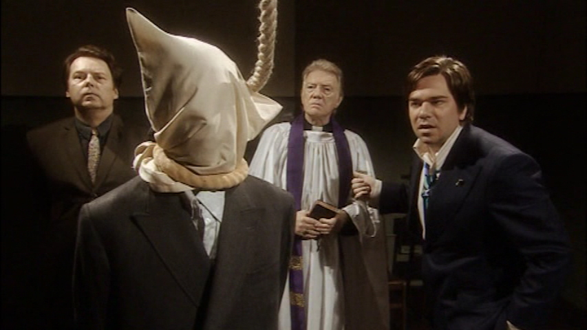 In a white deco building, professional hangman and scheming layabout Berry and high-strung American assistant Fulcher do their jobs with cheerful nonchalance and spend their off time in an upper crust gentlemen's club for their profession. A delusional girl chaser with flawed social skills, Berry has no problem luring Fulcher into various schemes even when they're disrupted by casual betrayals like reading a diary and blasting its contents to all their friends. That's just the basic framework though as the show careens through a wide variety of side alleys including a fashion ad for "Le Piss" and musical numbers including the funniest rap song you'll ever hear and some brain-damaging variations on the catchy, retro-style theme song performed a la the Mamas and the Papas. When you aren't too busy laughing, you'll start to wonder exactly what the hell you've stumbled into and where all the random, surreal silliness might be going before the next comedic bombshell hits.
