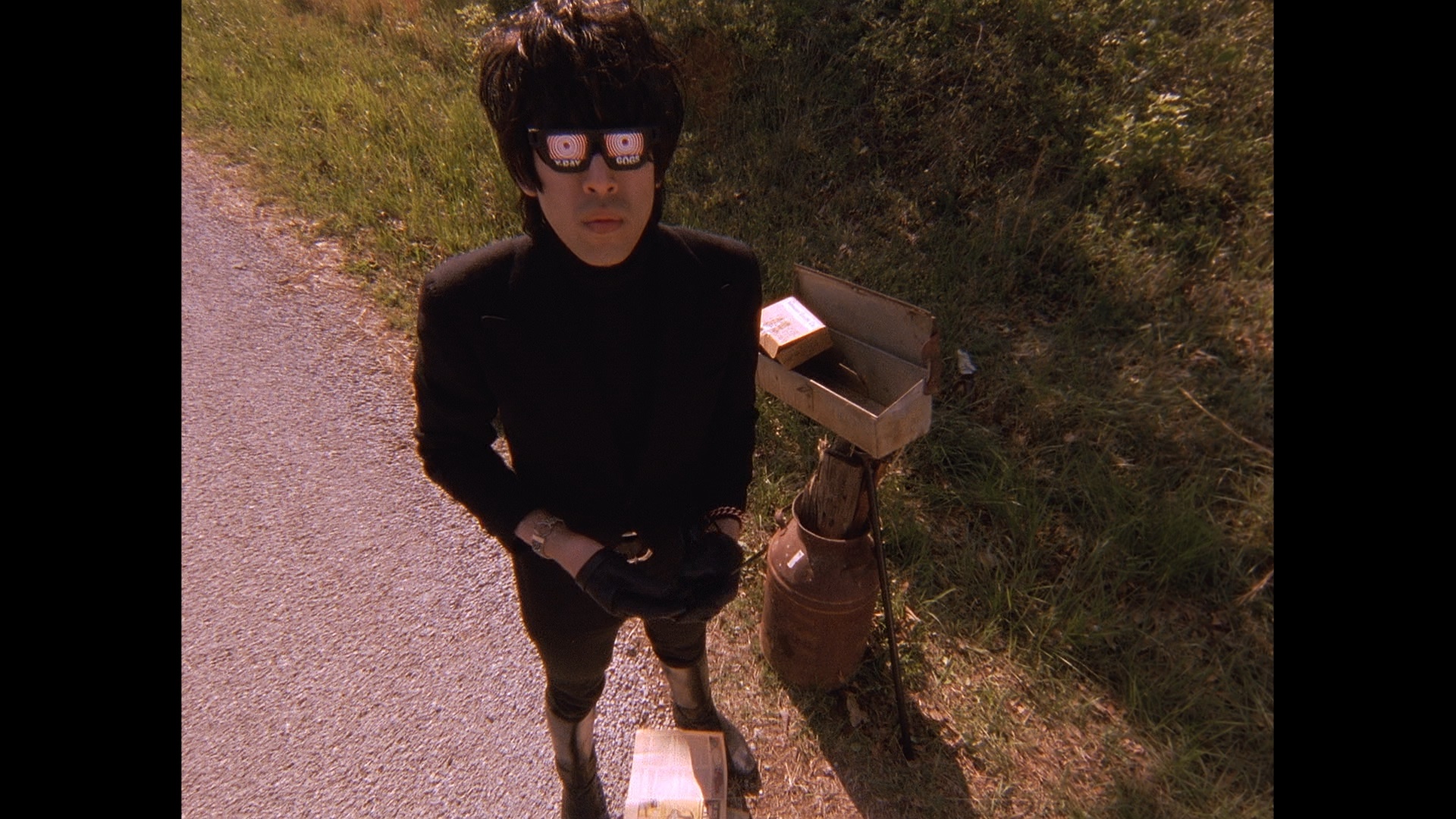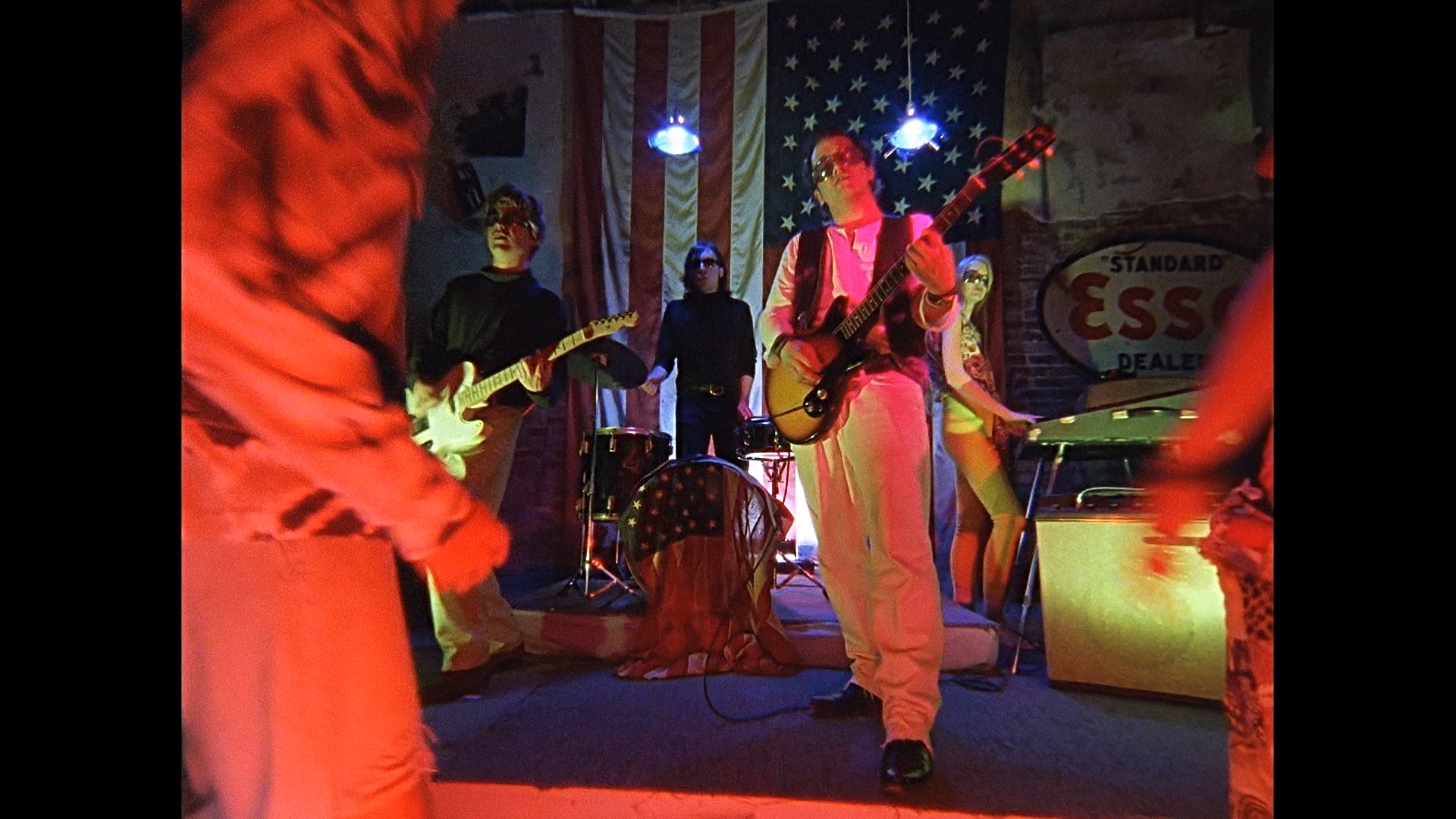 (44s), and five films by Emmy Collins: "Jack the Dipper" (7m36s), "Headshot" (7m4s), "Punk vs. Hippie" (1m10s) which is weirdly just a clip from the main feature in Spanish, "The Egoist" (1m59s), and "TV Humper" (1m57s). Then you get a bunch of related music videos from McCarthy and company: Guitar Wolf's "Invader Ace" and "Butobase - All Through the Night;" The Oblivians' "The Leather;" The Clears' "We Are a Rock 'n' Roll Band;" The Makers' "(Are You on the Inside or the Outside of) Your Pants?," "Lover Lover," and "Psychotropic Supergirl;" 200 Sachen's "Ganz Neu;" Poli Sci Clone's "Did She Follow Stars;" River CIty Tanlnes' "Looking for a Line;" The Real Losers' "She's Outta Control;" The Cute Lepers' "So Screwed Up" and "Terminal Boredom;" The Flakes' "Talk About You;" and The True Lovers' "Death Threat." Kerine Elkins is represented with two songs from the cabaret act "The Blue Soldier" (9m37s), followed by Super 8 B&W footage of San Francisco during the film's screening tour (2m43s) and four short segments sourced from VHS about the film's visual effects: "Wheat" (1m49s), "Kevin Webster" (45s), "Drangonwyck" (3m40s), and "Joe Riley" (6m22s)