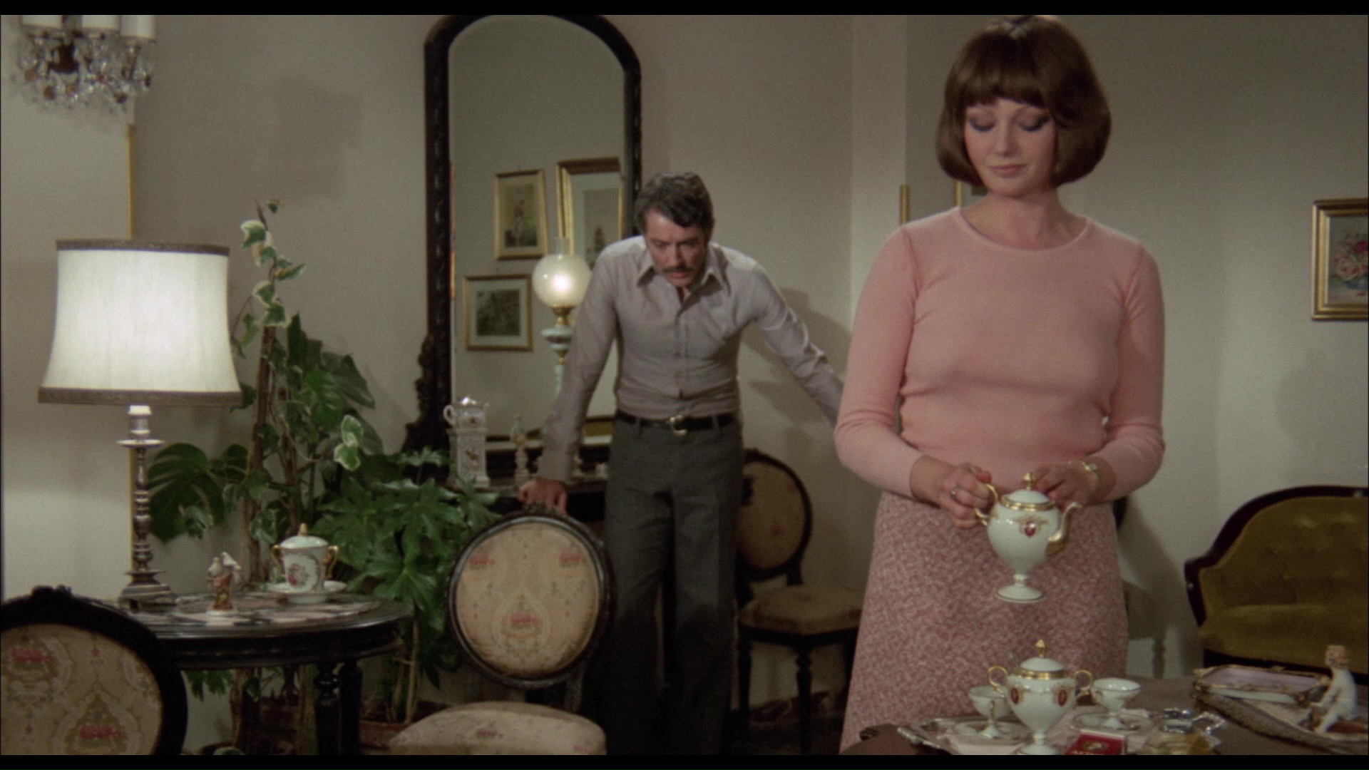 Don't worry though; it's quite a quick interruption, and the attention to detail here is welcome. Mono audio options in Italian and German are included with optional English and German subtitles. The widely bootlegged English dub is absent here; Granger (star of Hitchcock's Strangers on a Train and Rope) didn't provide his own voice but spoke his lines in English, and it looks like everyone else was speaking Italian or something else. (Incidentally, Farley was quite busy in the early '70s in Italy appearing in the likes of They Call Me Trinity, Amuck, The Red Headed Corpse, and a puzzling bit part in What Have They Done to Your Daughters?). As a result the Italian version has a markedly different tone, and some of its sexual politics are a bit more complicated than expected.