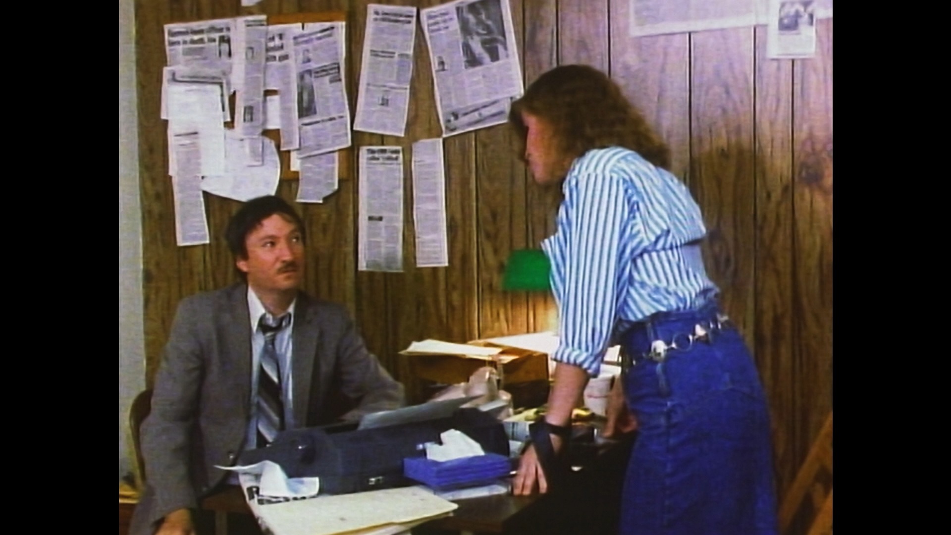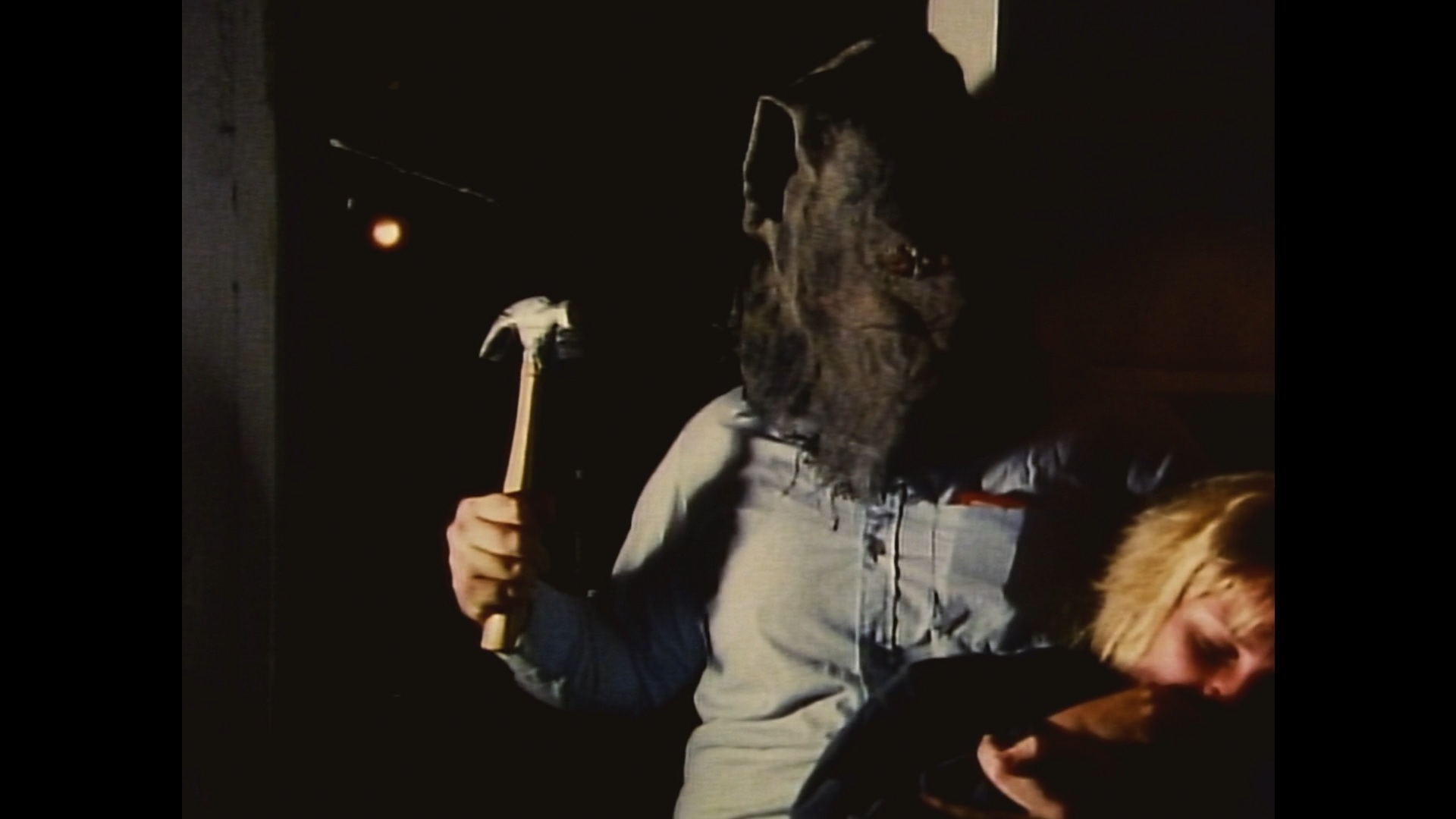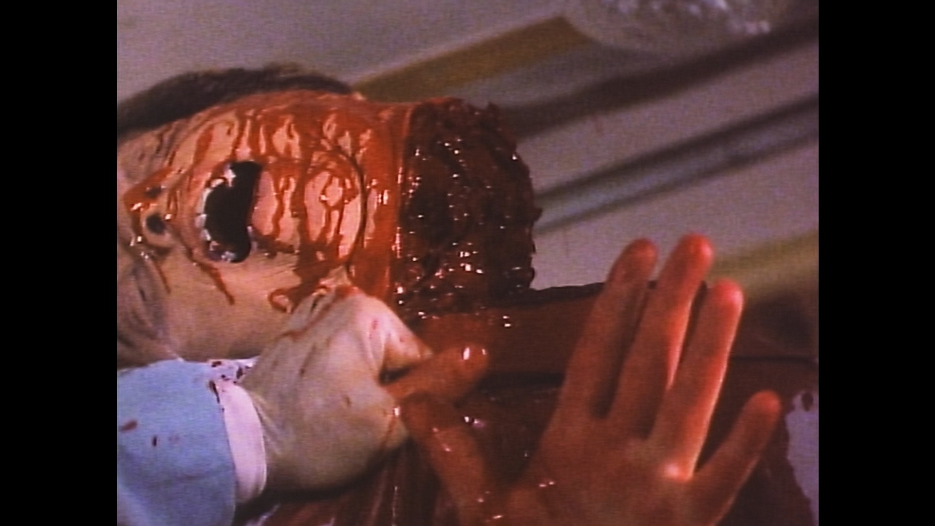 disc editions feature a commentary with Bishow who enthusiastically packs the track with tidbits about the footage he begrudgingly had to add, the potential casting of Edie Falco, the inspiration of Jean-Luc Godard(!), the process of getting permission to shoot around town, and his utter disbelief that anyone would listen to him talking about this film. You also get a reel of behind-the-scenes footage (11m43s) from both the original shoot and the added scenes including some fun gore gag creations, an amusing 18m27s Q&A with the director from his appearances cut together from the Alamo Drafthouse screenings in Austin and Brooklyn introduced by the label's Joseph A. Ziemba, a 2m23s photo gallery, the original VHS-sourced trailer, a bonus 1986 trailer for The Dead of Night Town, and a 1991 Bishow music video for "Wow" by Hypnolovewheel. The big new draw here is 2002's It's a Haunted Happenin' (74m1s), a previously unreleased Bishow shot-on-video creature feature musical. It's pretty much a silly goof about a Josie and the Pussycats-style band who burst into music video-style performances every few minutes with a sound very similar to a certain Russ Meyer X-rated hit and an Athens, Georgia retro band we all know. They also end up in a big spooky house where someone is chloroforming random interlopers and conducting experiments, with other oddities including vintage movie clips, a guy in an ape suit, and a butler who likes to serve TV dinners. There are also some horror host interruptions (in black and white, of course, complete with Ed Wood jokes), and of course, one of the bands is named The Soultanglers. It's all harmless G-rated fun made with a lot of love for the cost of a turkey sandwich. It also comes with a very breezy commentary by Bishow and co-writer Jon Sanborne who look back at claustrophobic actors, DIY set construction, impromptu music video shooting, and a lot more other tidbits than you'd expect over the course of 74 minutes.