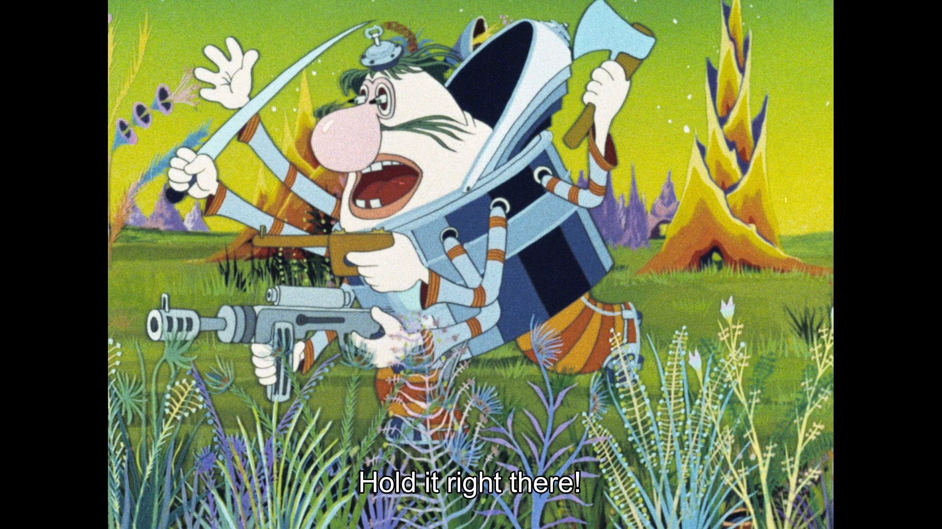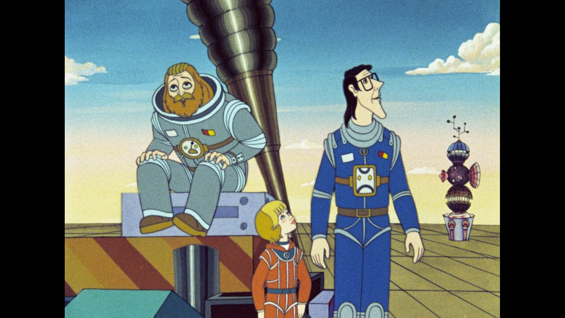 detailed animation, this is a great way to dive into the set. The swift pacing, oddball characters, and funky pseudo-classical score make for a fun place to swirl around in for less than an hour, and it's no wonder a cult following built up around it. The transfer here looks beautiful (as with the other titles in the sets) with excellent detail and fine film grain. The Russian 2.0 mono track sounds pristine and comes with optional English or English SDH subtitles. A new commentary by Adam Rackoff, James Hancock and Martin Kessler is great accompaniment as well as they talk about the various pop culture spin-offs of this film (action figures!), the complex nature of the soundtrack, the possible influence of Yellow Submarine, the two different English dubs that were created (not on this disc but easily accessible if you're curious), and the animation techniques that give the film extra charm like having the characters always moving in some way. The video essay "Roman Kachanov and The Mystery of the Third Planet" by Evan Chester ((21m11s)) covers the director's life after his military service as he was trained in animation and worked up to becoming a beloved figure for young and old alike, with this film being one of his pivotal works.
