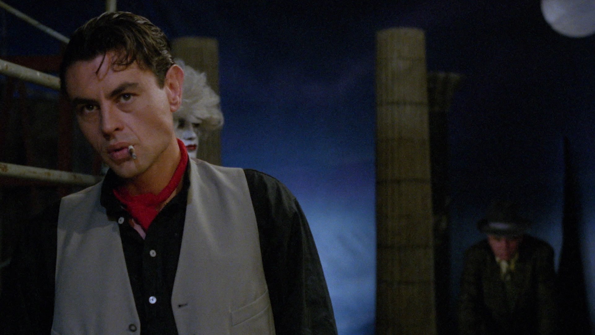 In the new "Staging the Fright" (44m22s), Soavi gives a much longer and more detailed history of the film and his professional relationship with D'Amato than before, as well as the differences working with Dario Argento and Gilliam, his own creative process, the appeal of Agatha Christie-inspired body count conceit, the influence of some key works of fine art, and some of the key shot decisions he made. In "Theatre of Blood" (21m1s), Radice chats about all things Soavi from their early days acting together on City of the Living Dead through his approach to his juicy role in this film, including the less than optimal shooting location and the threadbare nature of the production at times. Finally in "The Last Performance" (21m14s), Brandon goes into his back-to-back shooting with the Taviani brothers on Good Morning Babylon, the effective nature of the isolated sound stage, his previous encounters with Soavi and D'Amato playing Caligula, and the balance on set between director and producer.