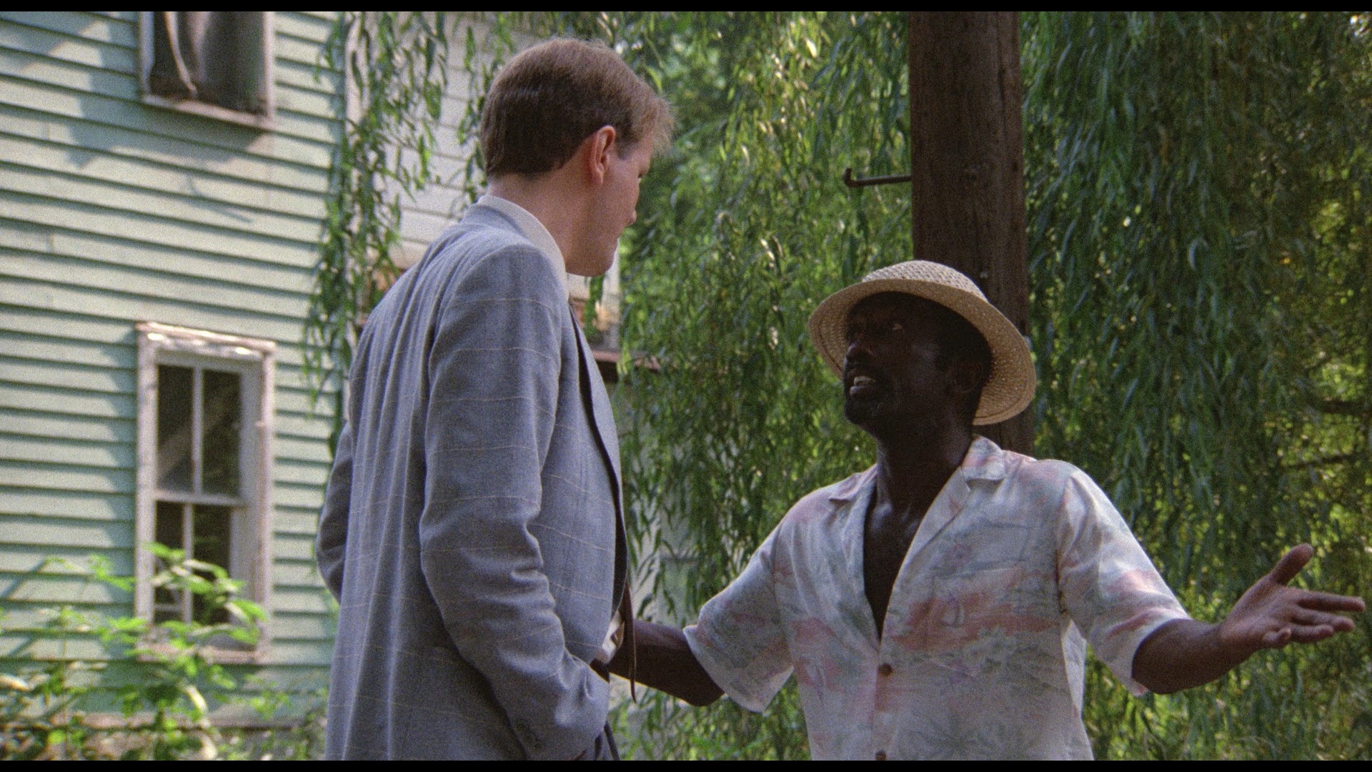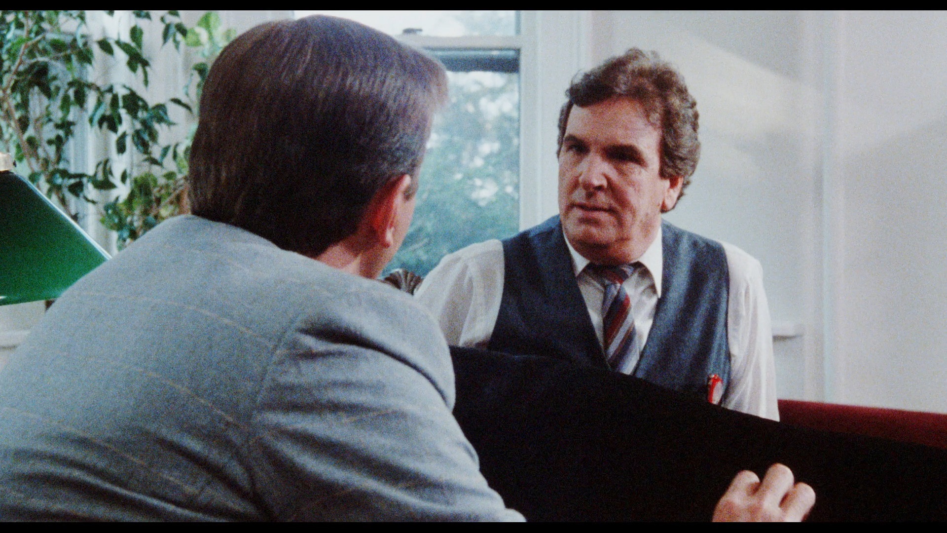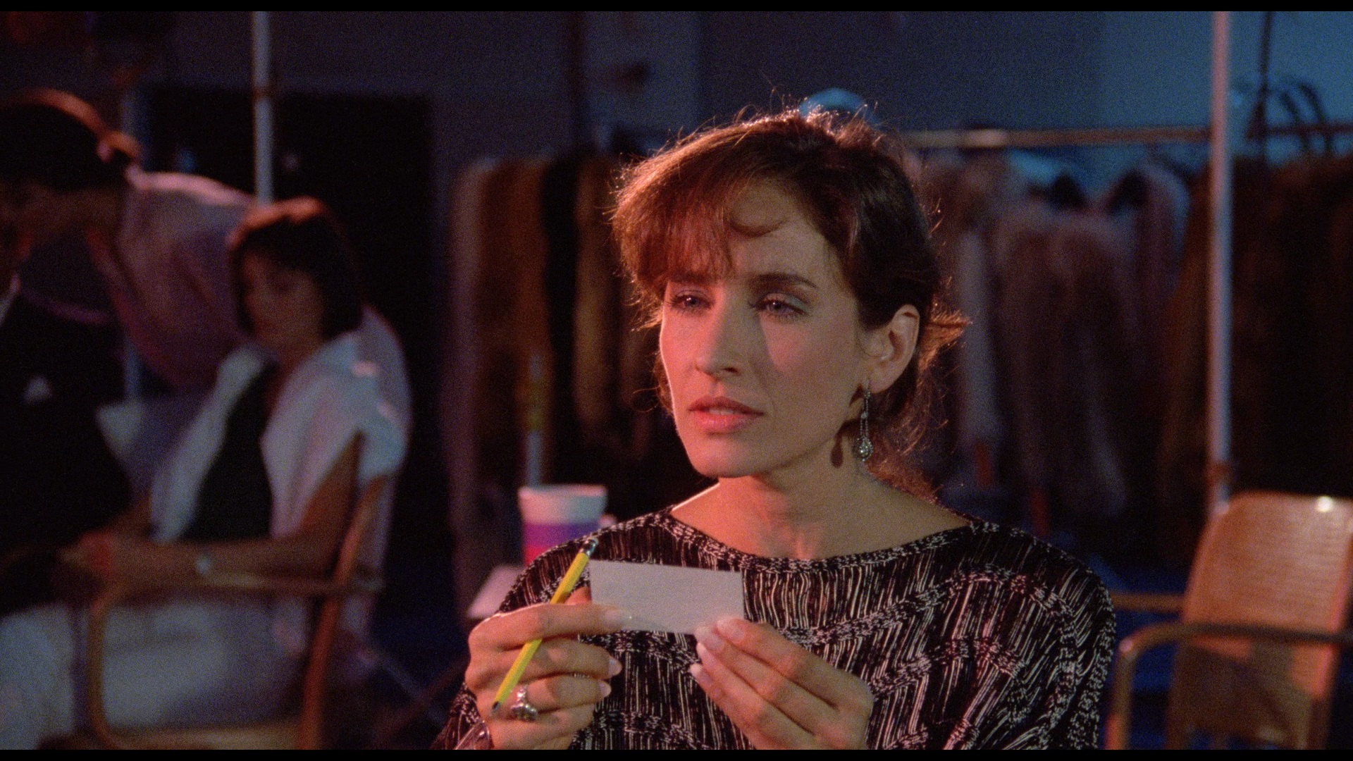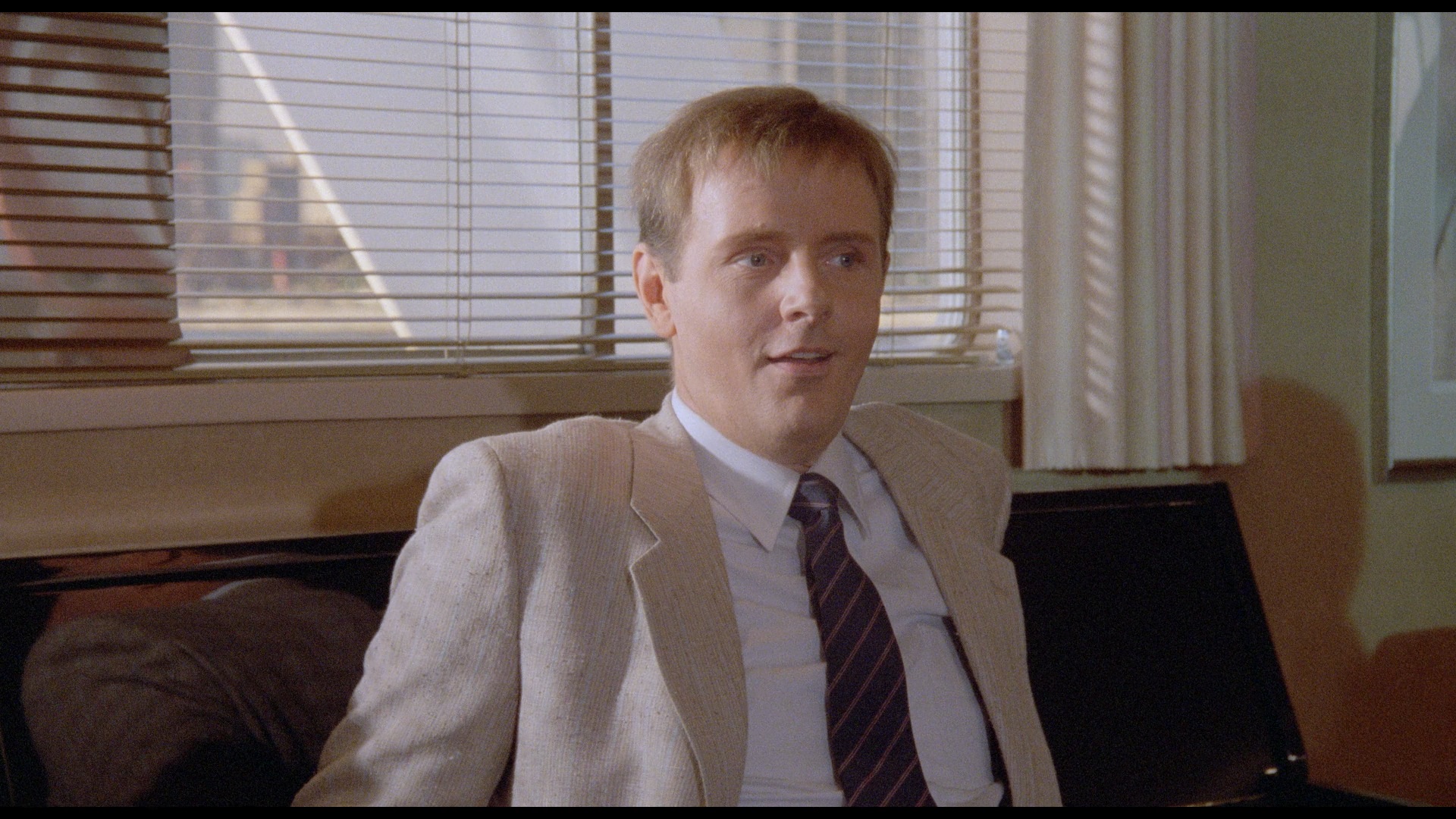 But wait! Since this is a two-disc set, you also get a Blu-ray featuring a pre-release version of the film clocking in at a much longer 118 minutes. This print apparently surfaced by surprise and represents Cohen's initial cut delivered to New World, which he was begrudgingly forced to cut down and rescore. Though the gist of the film is the same, the experience is quite different with many scenes extended and shuffled around including a great Peller-Vigoda commercial placed at the beginning. There's a lot of expansion for the Moriarty-Marcovicci romantic relationship here including a lengthy bedroom scene, and the ending plays out differently by dropping the stinger epilogue and instead closing on a more clear-cut note. The presentation here is obviously from a print but looks quite nice all things considered, again with 1.0 LPCM mono audio with optional English SDH subtitles.