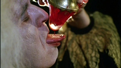 As usual for a Full Moon title, Subspecies was released direct to VHS and laserdisc in 1991, and that tape master became the worldwide standard for two decades on DVD. It was fine at the time, but as technology moved on considerably since then, its shortcomings became obvious. Paramount never showed much interest in exploiting the films on DVD, but eventually a set of all four films (and the spin-off feature Vampire Journals) popped up as a mysterious "import" from Kangaroo Video, eventually getting reissued through Echo Bridge (a triple feature disc of the first three films); all were plagued with massive compression problems, with the box set boasting some distracting digital glitches as well. By default, Full Moon's Blu-Ray of Subspecies featuring a new HD transfer had to be an improvement, and when evaluating it, one has to take the film's history into account and also cope with the fact that it's 1080i (which may be due to the end credits being obviously culled from a video source, and the opening titles are obviously from an inferior source as well). Like Puppetmaster (the only prior Full Moon title to benefit from an HD remaster as well), this was filmed on a low budget in Europe and intended for a home video audience, so don't expect the crisp, glossy visuals found in major studio films. That said, it's a major improvement in many respects; the 1.78:1 framing looks much more balanced now that excessive space from the open matte version has been removed, colors are punchier and darker (especially the much richer reds), and detail improves across the board, giving the film a more ornate and classical feel than before. (Click on any of the images here for a full resolution frame grab, and click here for the first image from the DVD for comparison.) It's still imperfect in many respects given the limitations of the source, and a handful of the darker scenes suffer from uneven compression (that's much more pronounced on computer playback than on properly calibrated TV displays, where it's much less of a factor). Again, while this may not be a title for Blu-Ray perfectionists by any means, this will still be a godsend for Full Moon fans and hopefully paves the way for the superior sequels to get the same treatment. The two-channel stereo audio sounds fine throughout, and as expected, the big extra here is the original 10-minute Videozone making-of featurette (in SD), which features Nicolau and many of the cast and crew on location talking about the making of the film. Much focus here is given to the title creatures, which were originally shot with men in monster suits on large sets but replaced with stop-motion and puppet critters at a late stage. The end result is actually the biggest flaw in the film, but if that's what it took to get the series underway, then so be it. Also included are bonus Full Moon trailers for Evil Bong 3, Gingerdead Man 3, Killjoy 3, (sensing a pattern here?) Skullheads, Demonic Toys 2, and Puppetmaster: Axis of Evil.