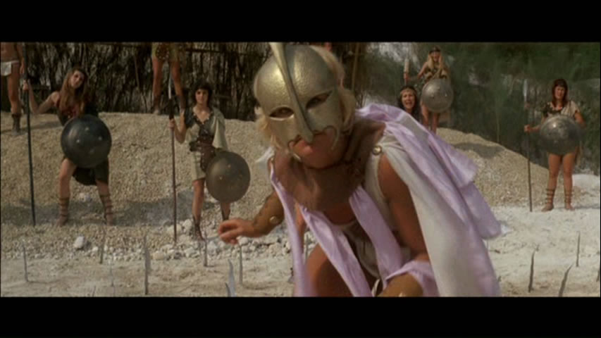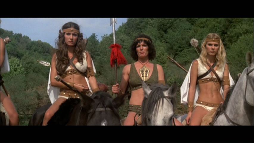 It's sort of a successor to his 1973 film, Battle of the Amazons, a more straightforward Italian actioner, but here the decision to throw in lots of kung fu and goofball comedy (not to mention a huge amount of violence) turns it into something completely alien to modern sensibilities. Things start out on a feverish note as we meet our titular tribe of amazons, a particularly ruthless bunch who get their kicks by standing contestants on tall wooden stilt platforms and having them fire arrows into each other. They're hell bent on conquering every village in their path,