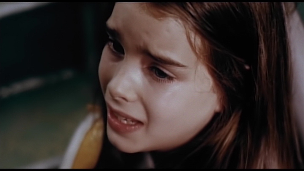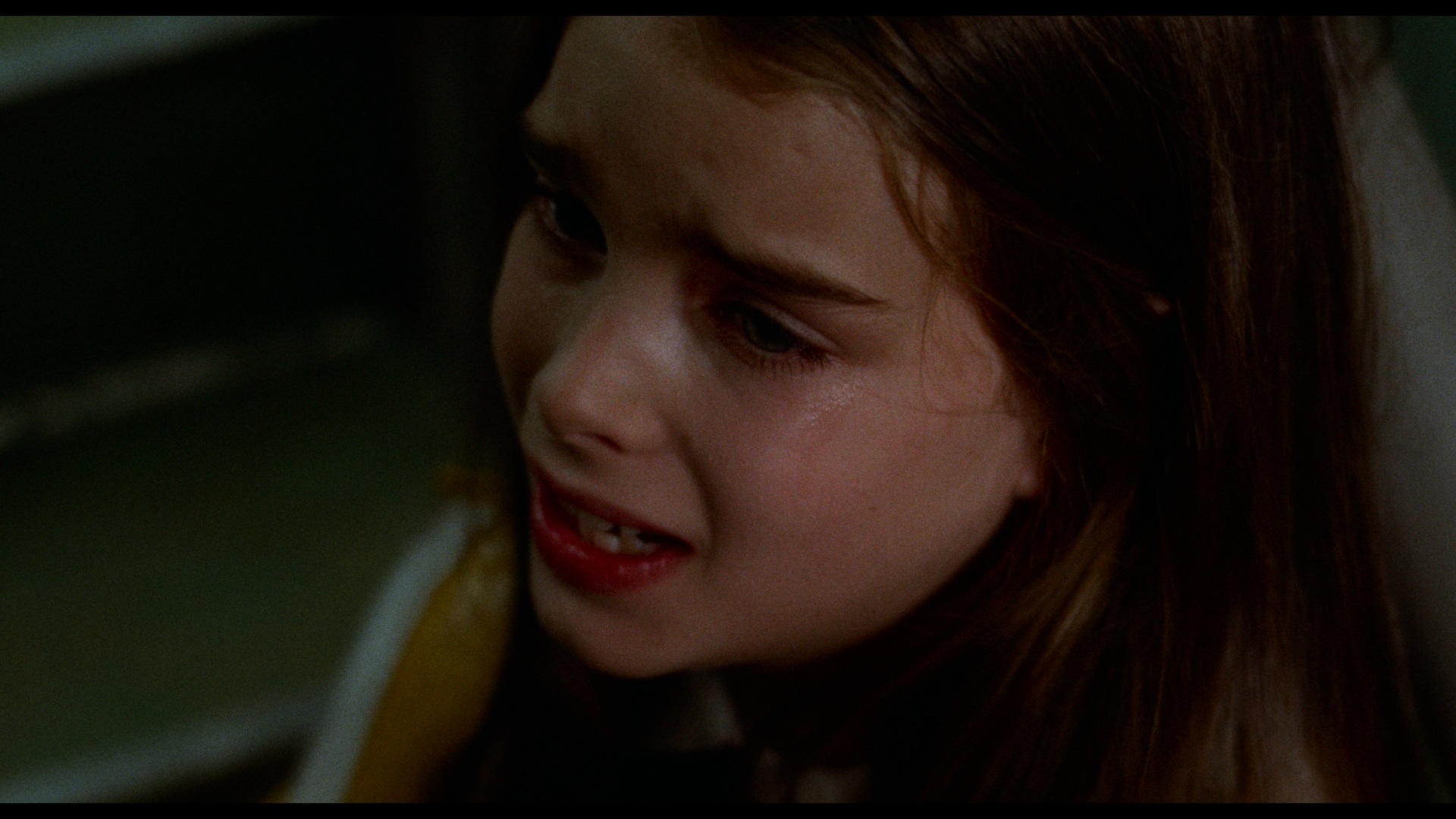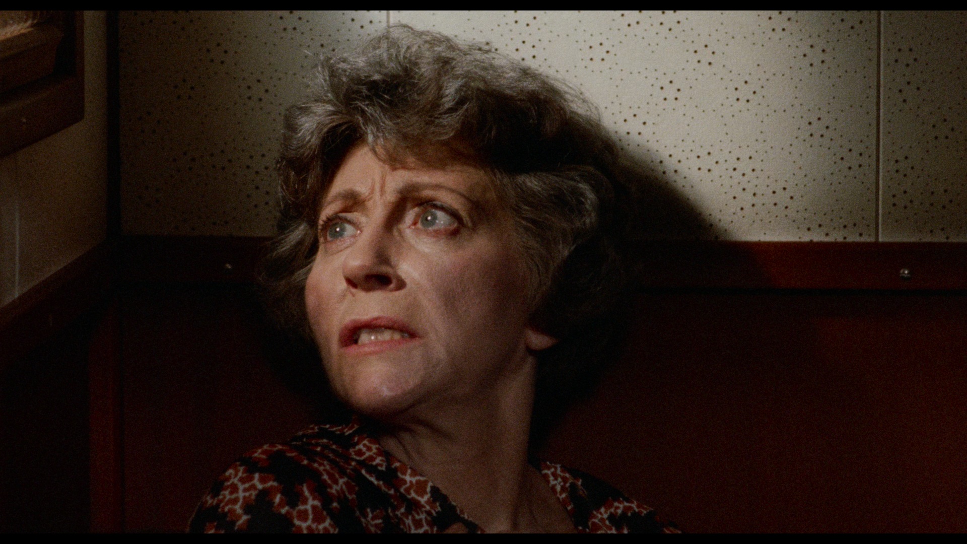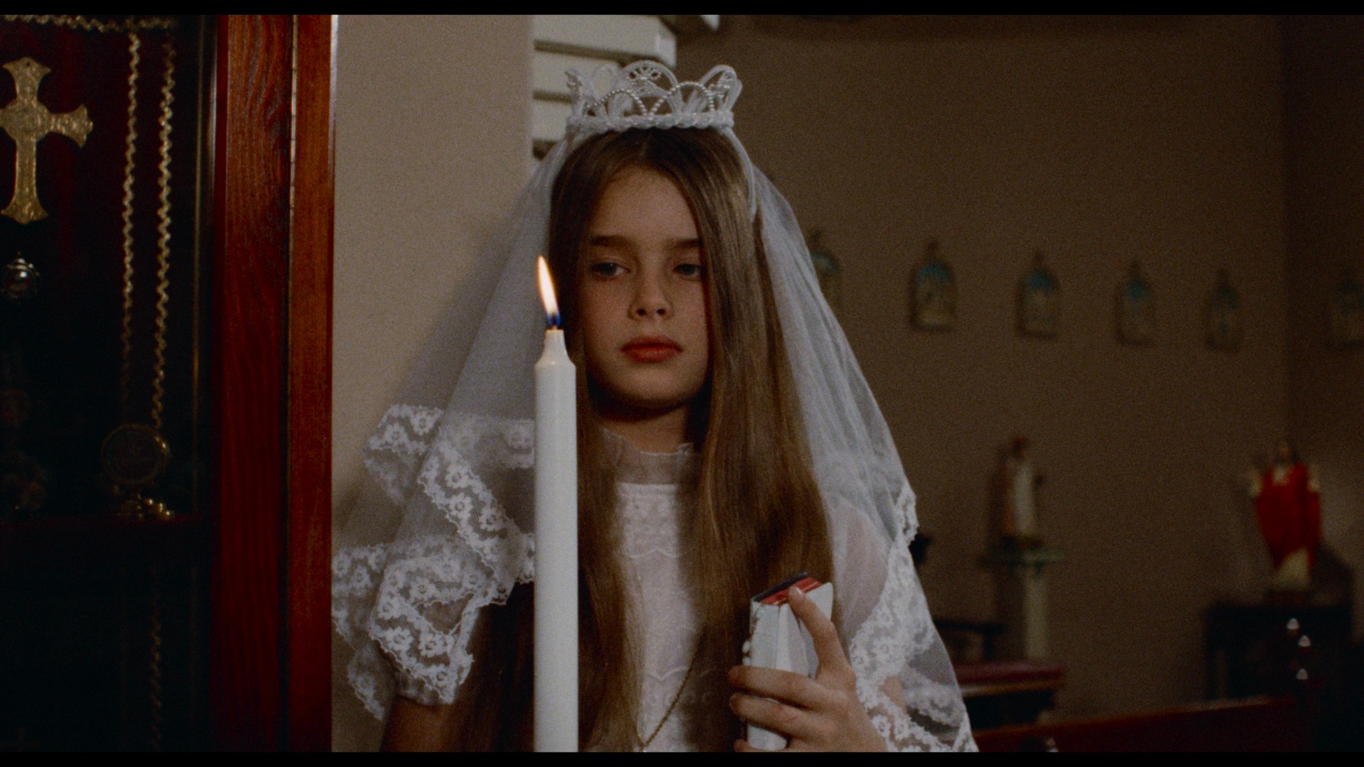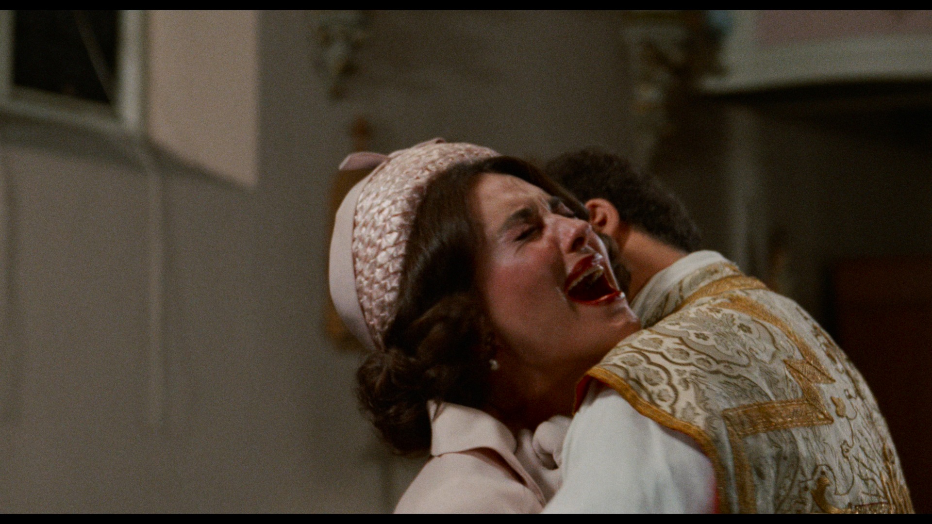Flash forward to 2018 with the film's first Blu-ray release in the world, a much-touted restoration from 88 Films. The region-free disc was first released as a website exclusive and featured a considerable amount of additional detail than before with previously unseen textures now evident throughout, especially in the interior scenes filled with lace and polished wood. More image info is visible on the edge and the colors are still fairly subdued and a bit cooler here. The English LPCM mono audio was also substantially improved, with so much clarity now that it becomes glaringly obvious that DeNoble was looped (by another actor?) in most of his scenes. Optional English SDH subtitles are included, which means this is likely the first captioned release of the film anywhere as well. The commentary track is included again here, plus the ridiculous Holy Terror trailer (which prominently uses a photo of a much older Shields), the Communion British TV spot (with Tintorera!), a gallery (4m55s) of posters and other ephemera from around the world, and a 5m20s restoration demonstration that absolutely should not be watched until you've already seen the film!