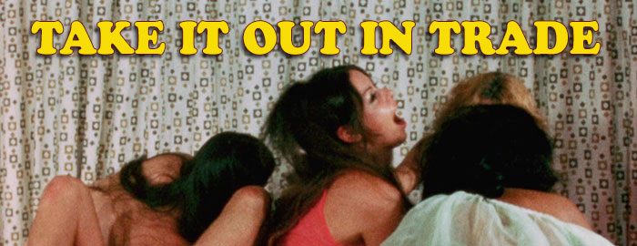 became a cause for celebration among "bad movie" fanatics salivating over Plan 9 from Outer Space, his followers have been trying to solve a number of mystery titles starring and/or directing the cross-dressing maverick ranging from abandoned projects to ultra-obscure pornography. One of the most tantalizing of these titles has long been Take It Out in Trade, which was considered a lost film for decades with little evidence to confirm its existence at all until an hour-plus reel of silent outtake footage was discovered and released from Something Weird Video in 1995. What unspooled there was confounding but wonderful, a montage of naked women, Wood in drag, nearly hardcore sex scenes, and some sort of mystery plot. Against the odds, the actual film managed to turn up courtesy of a dupey version screened in New York in 2014, with a 2K-scanned restoration bowing with some controversy at Fantastic Fest in 2017 (making it one of the strangest footnotes in the #metoo movement to date). As it turns out, the film itself is a funny, frothy little softcore comedy that shows Wood at his most deliberately playful with plenty of quirky touches among the nearly wall-to-wall bare skin.
